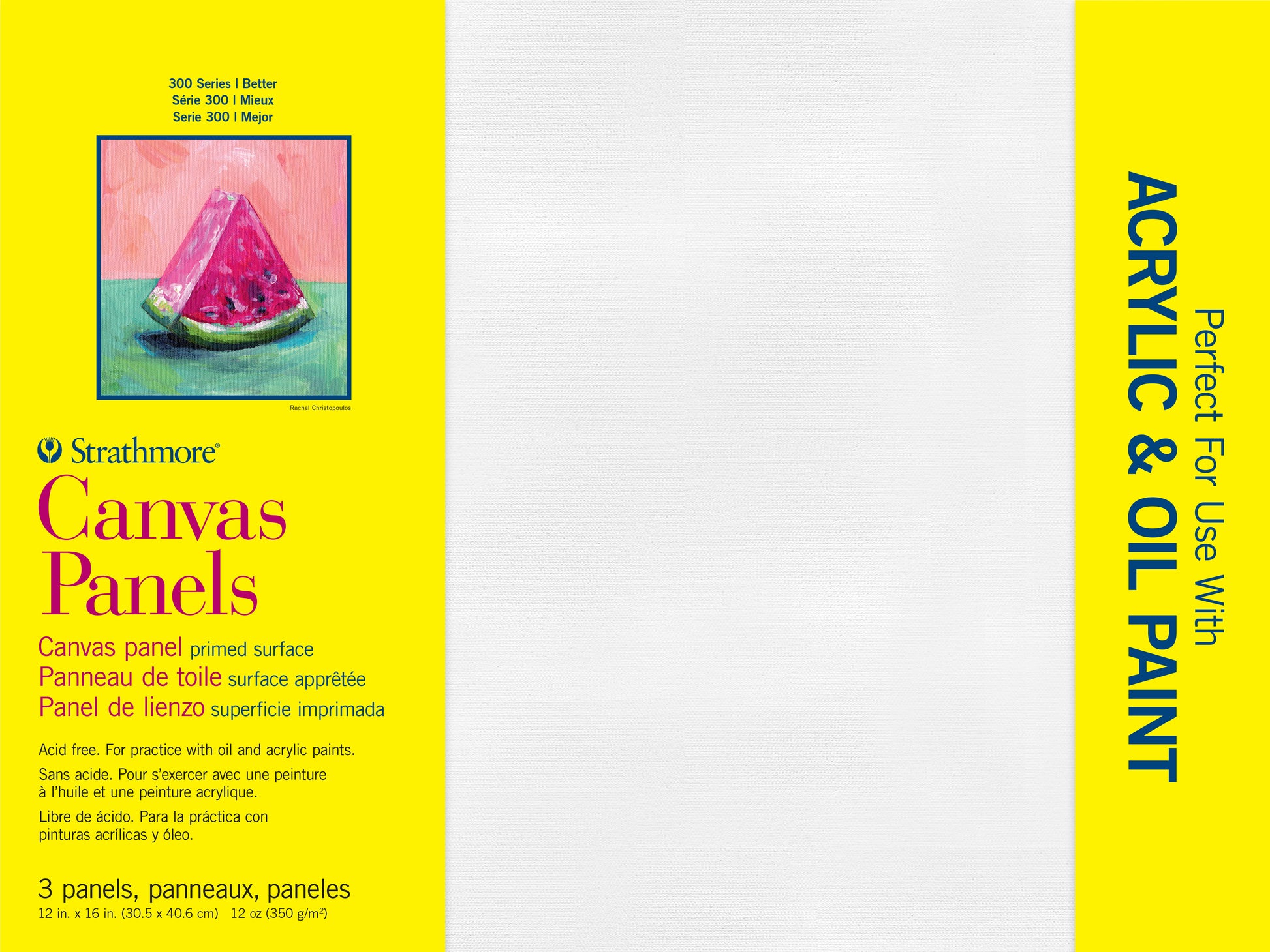 Strathmore Canvas Panels are an ideal surface for practice or final art by artists of all skill levels. Made of 100% cotton canvas, they're triple primed, saving you time and money. Excellent for use with acrylic, oil, and water mixable oil paint. They're also sturdy enough for heavy applications of mixed media, collage and impasto. Acid free.