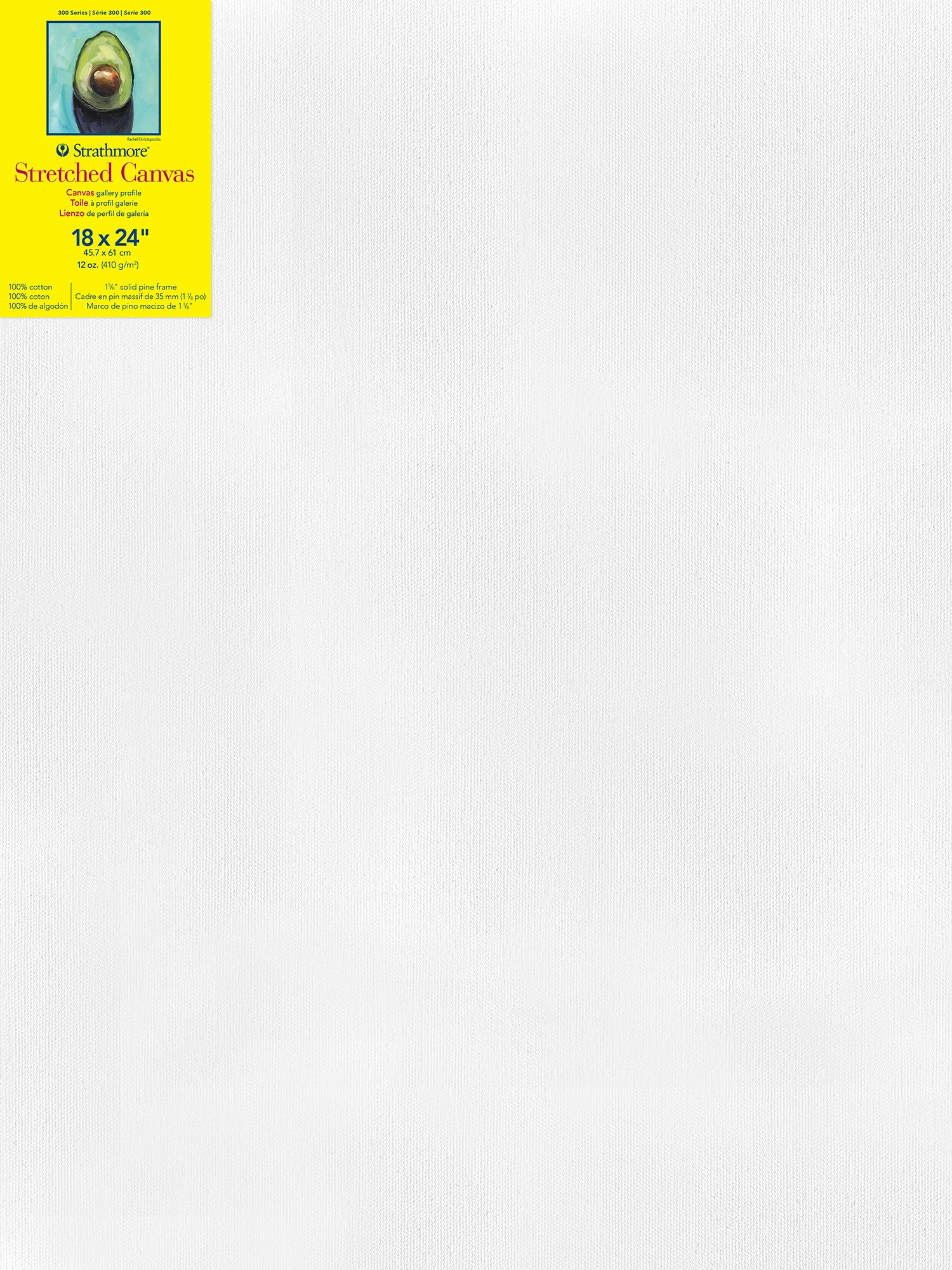 Strathmore 300 Series Stretched Canvas is an ideal choice for artists of all skill levels. Excellent for use with acrylic, oil and water mixable oil paints. They are also sturdy enough for heavy applications such as mixed media, collage and impasto. Gallery canvas have a profile of 1 3/8 in