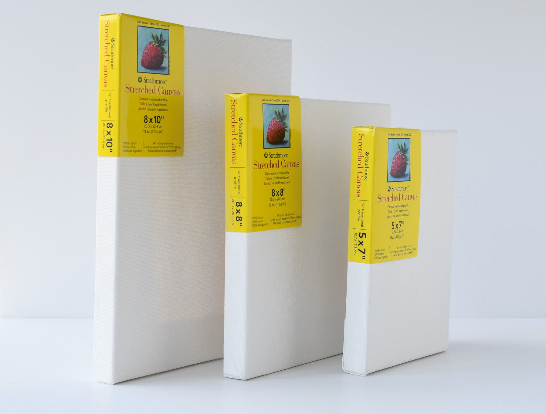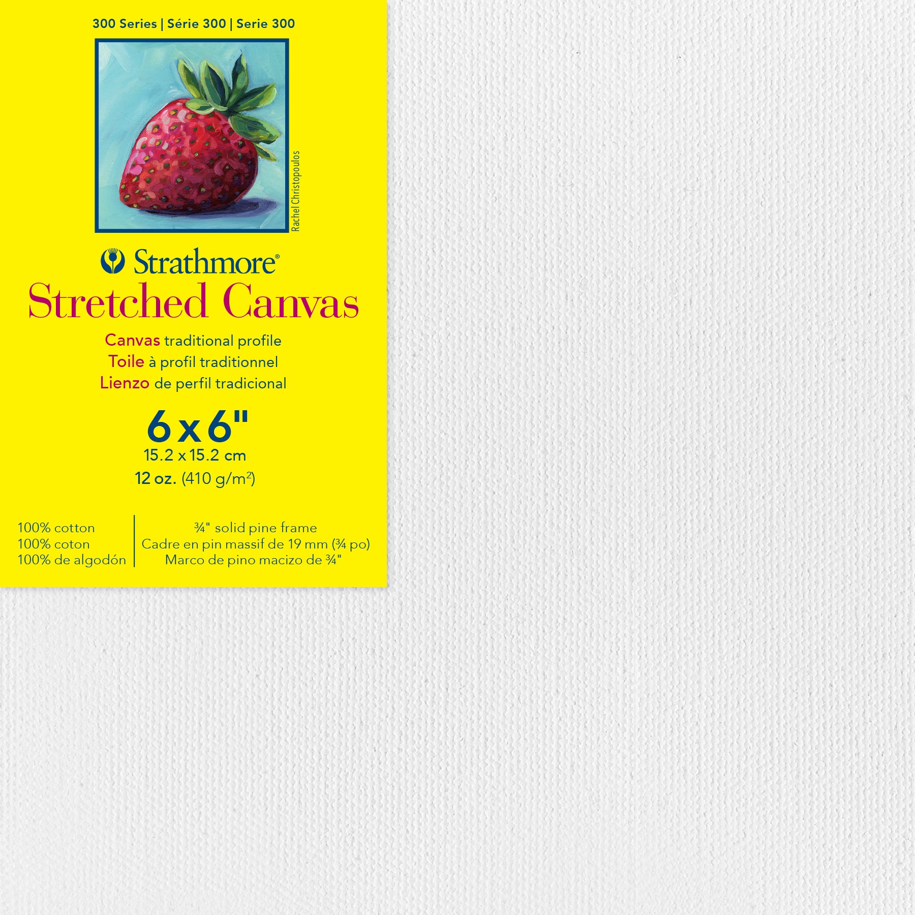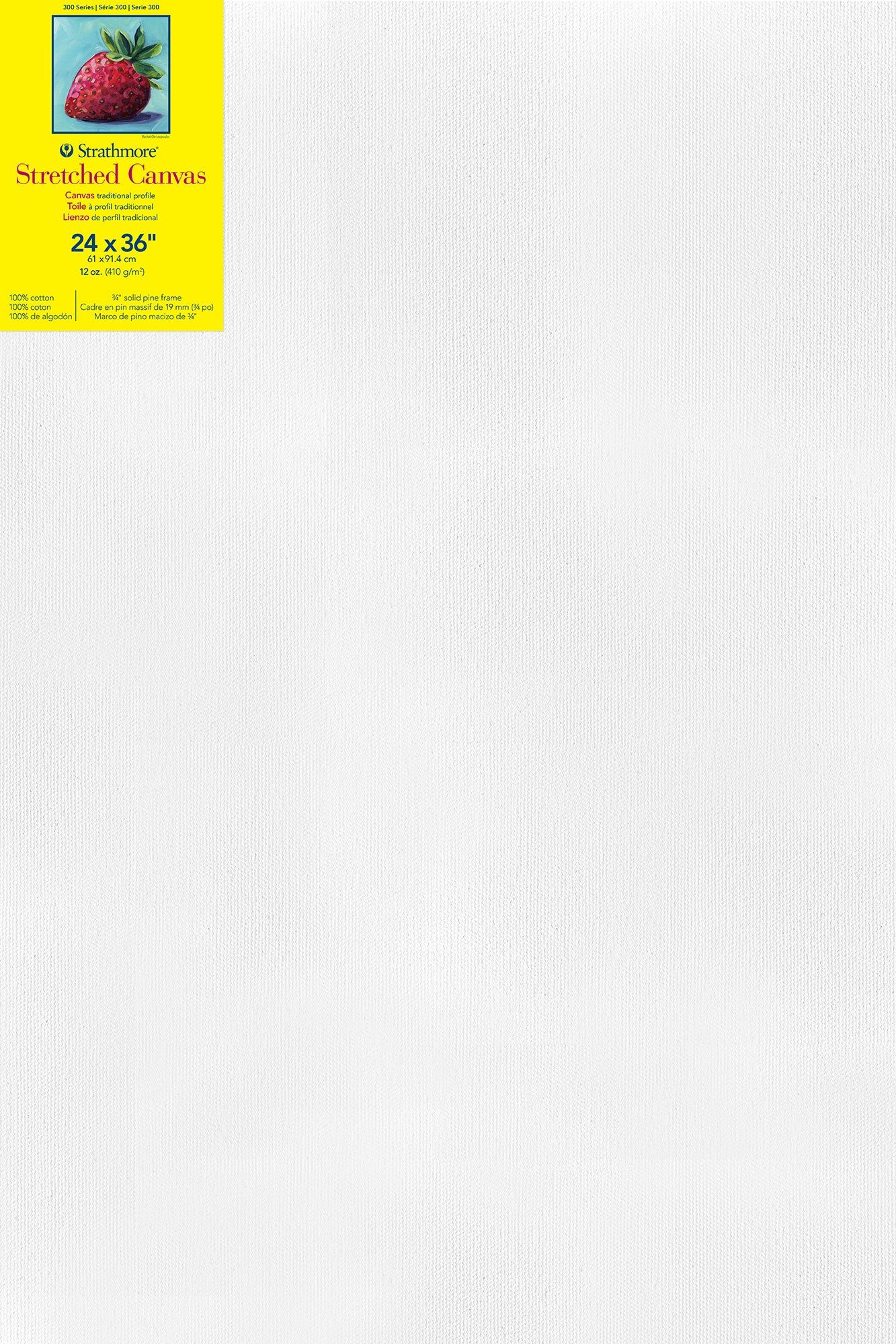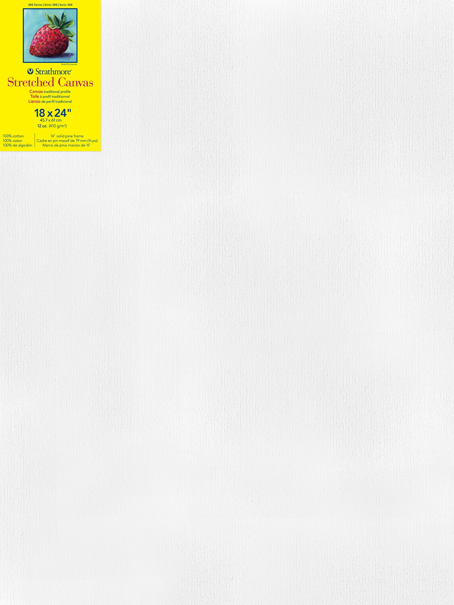 Strathmore 300 Series Stretched Canvas is an ideal choice for artists of all skill levels. Excellent for use with acrylic, oil and water mixable oil paints. They are also sturdy enough for heavy applications such as mixed media, collage and impasto. Traditional canvas have a profile of 3/4 in.