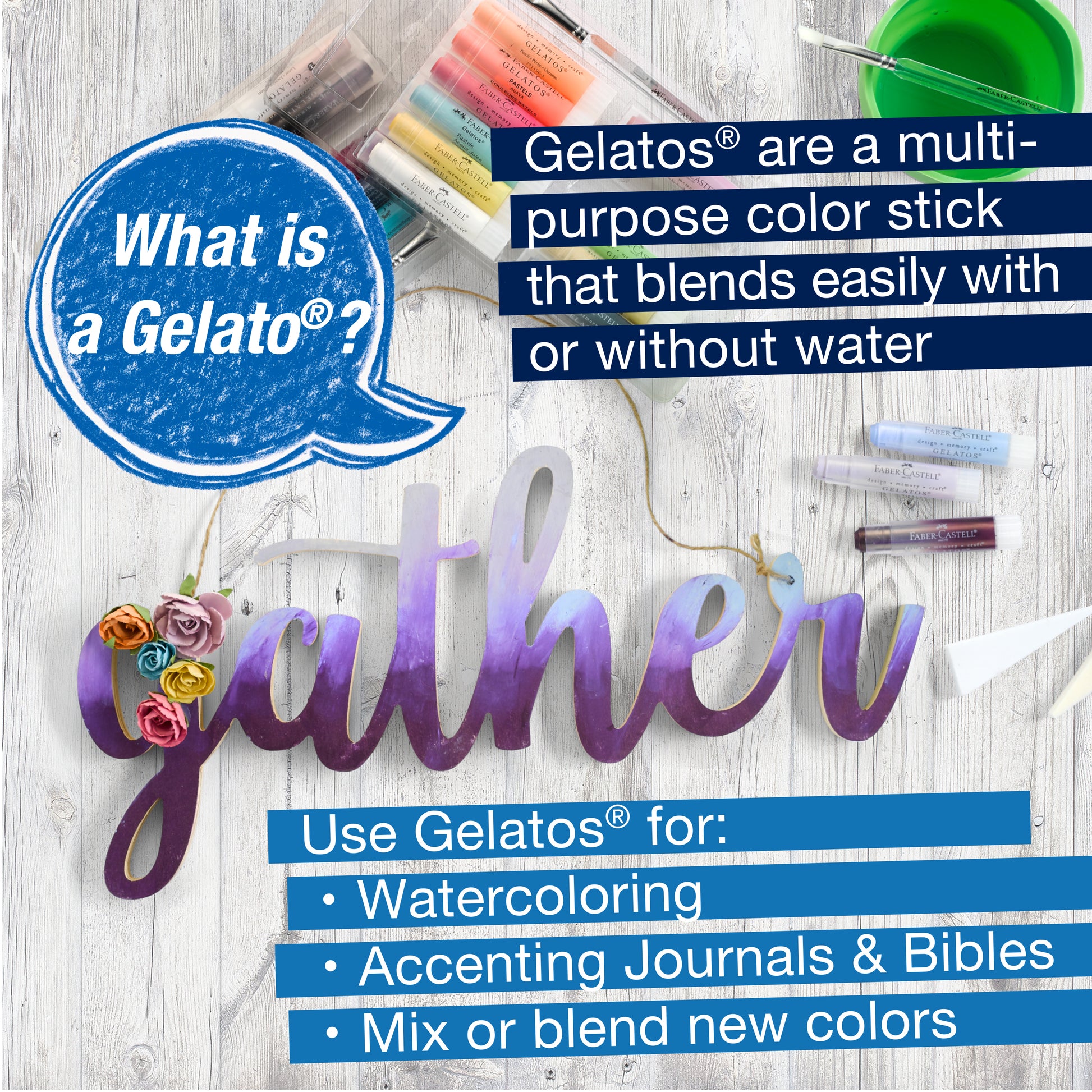Nothing on the market today compares with Design Memory Craft Gelatos®. Compact acid-free pigment sticks glide on creamy smooth for vibrant color and coverage. All Gelatos® blend easily with or without water. Try this unique medium on paper, canvas, or wood!