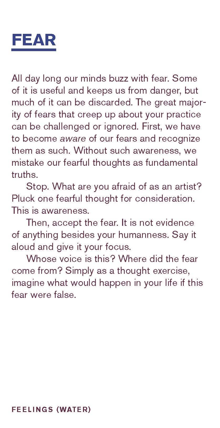 In this handy, interactive card deck, Pickens identifiescommon traps, feelings, myths, and blocks that artists encounter and offers insight into working through each one.