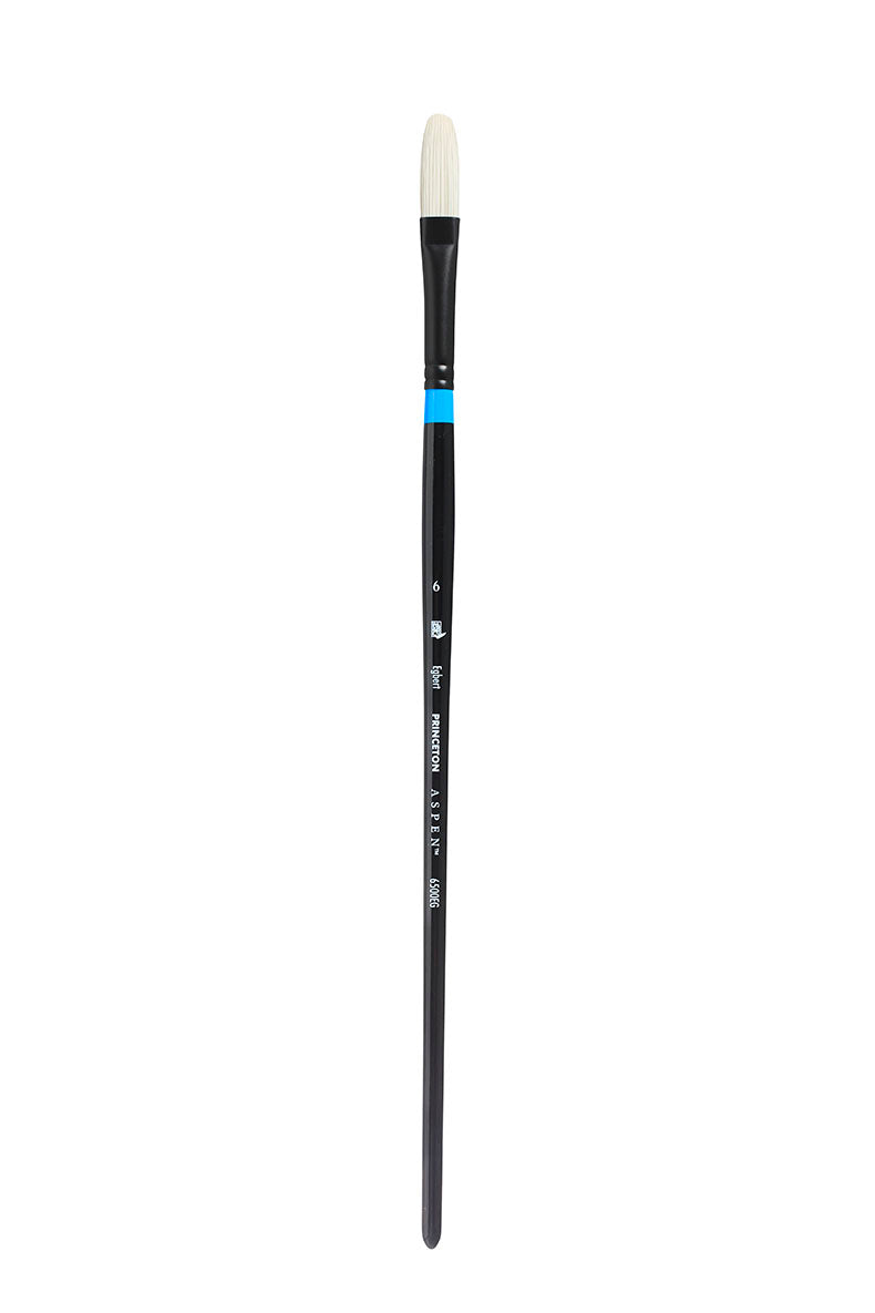 Princeton's Aspen combines several important benefits to artists: the brush retains its shape for control and placement of color, paint releases and glides evenly off the synthetic hairs. The brush can be used with all acrylic and oil paints including water-soluble oils. The non-glare ferrule makes Aspen perfect for outdoor painting. A beautiful brush only surpassed by its performance.