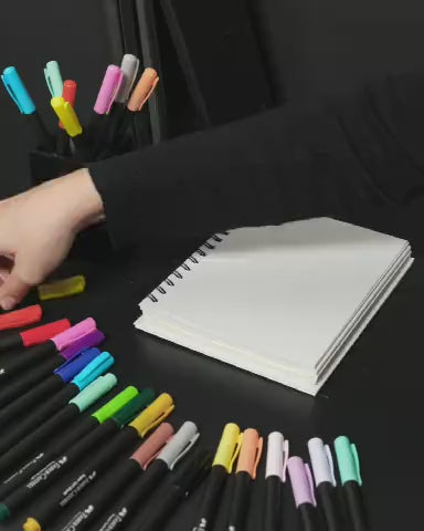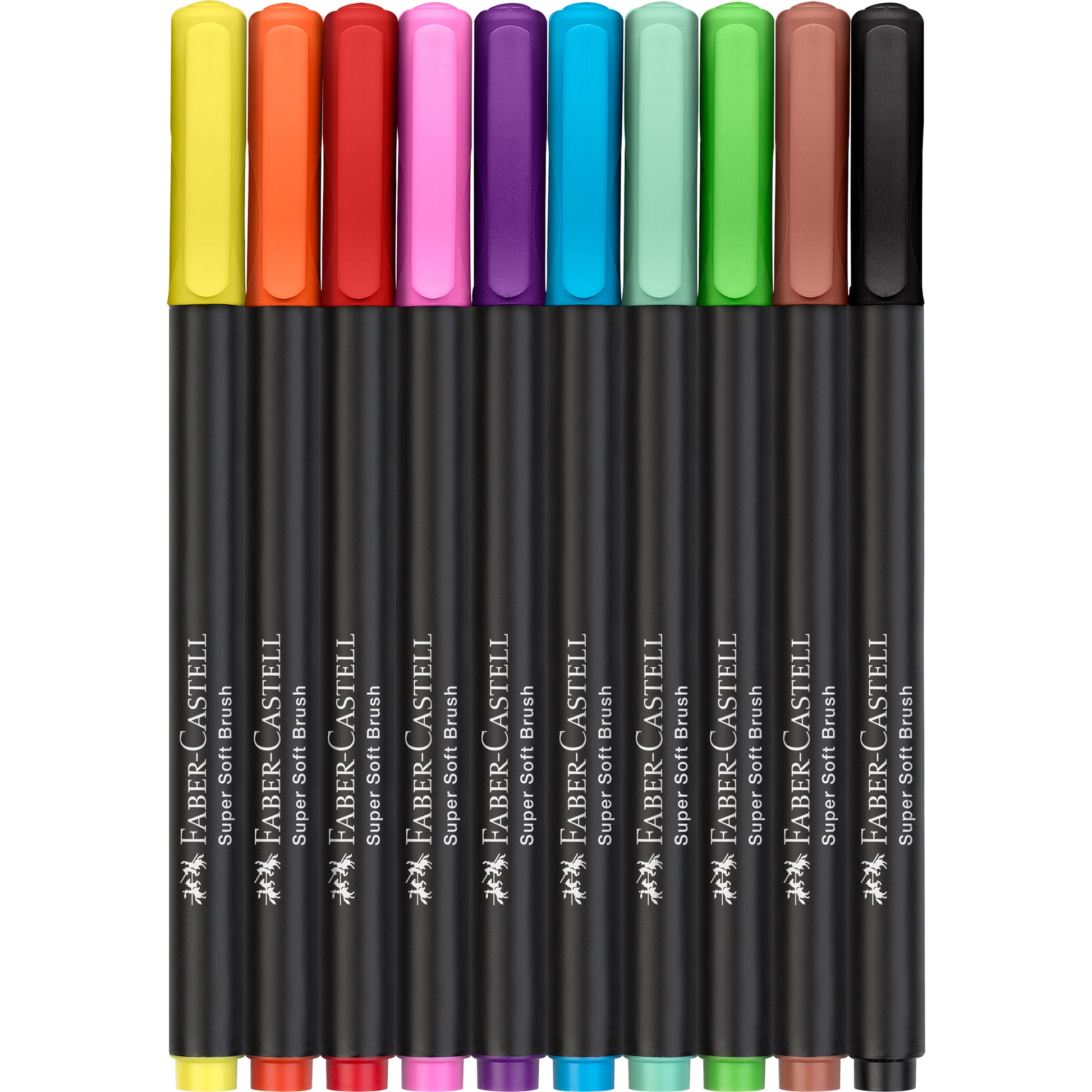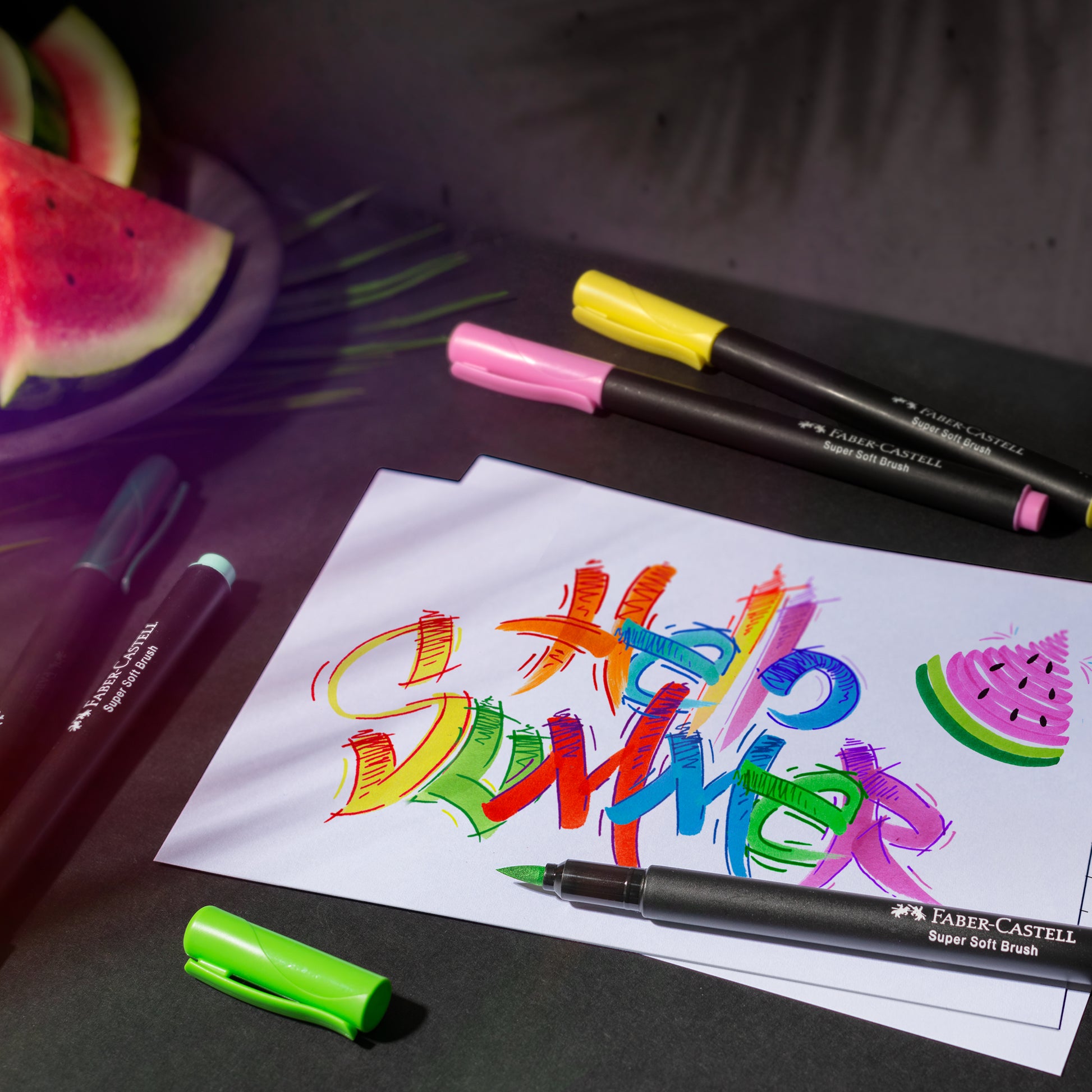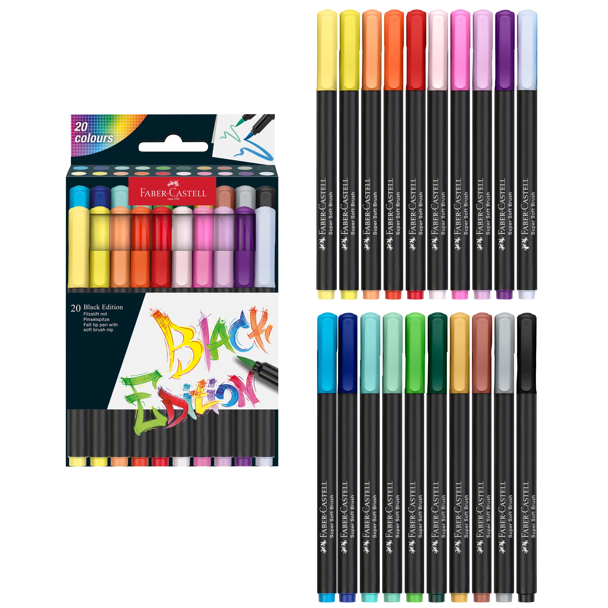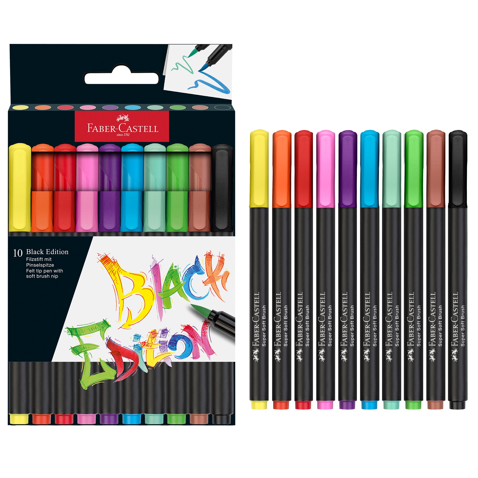 Black Edition Super Soft Brush pens are a great addition to your creative arsenal! Perfect for lettering and coloring, the soft brush nib flexes easily to achieve various line widths and transitions. Enjoy rich, bold colors from these pens to add brilliant pops of color to your creations! Brush Tip Markers Soft Brush Tip for comfort and smoothness when coloring and writing. Ideal for lettering and painting on large surfaces. Water-based washable ink. Anti-suffocation cap. These markers are intended for use on white or light colored paper. They do not work on dark paper.