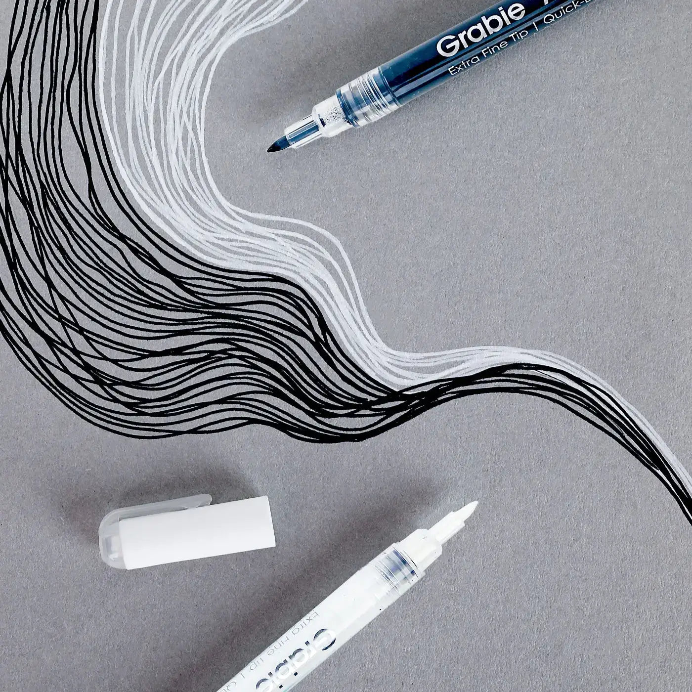 Create bold paintings with Grabie Black & White Extra Fine Tip Acrylic Paint Marker Set Of 6. Black and white are the most essential colors, and we’ve included refills to meet all your painting needs.