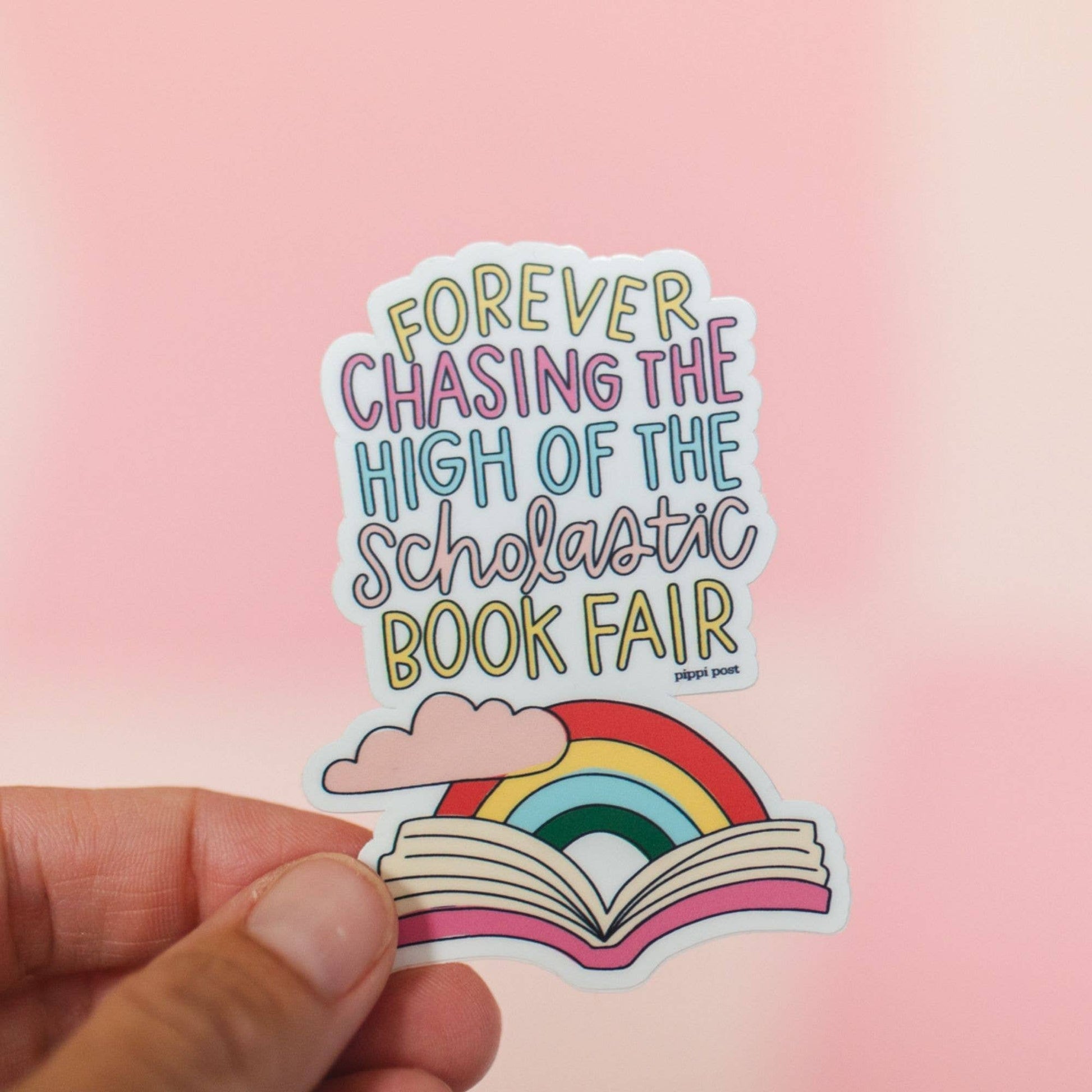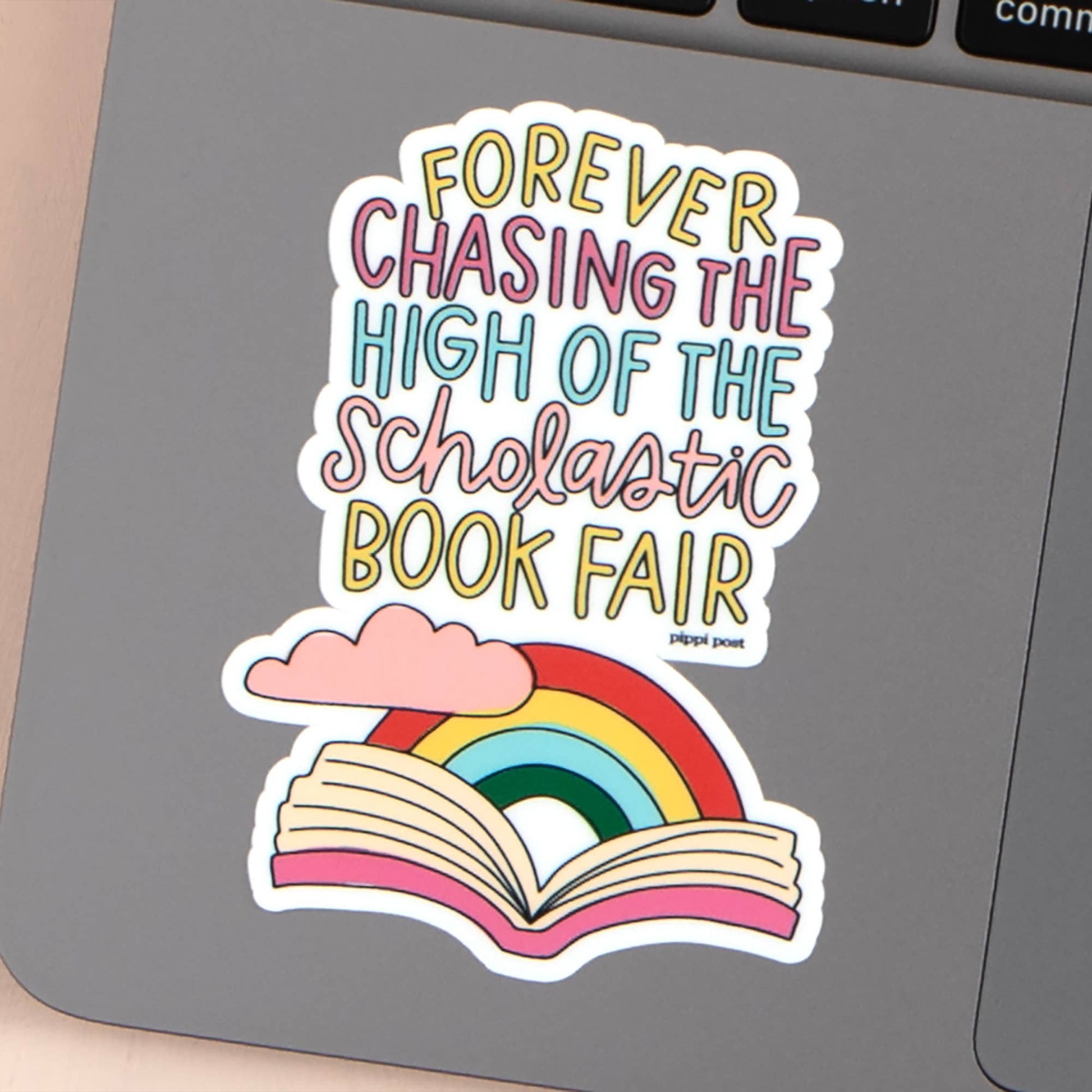 Relive the magic of childhood with the Book Fair Decal Sticker! Featuring a playful design with a rainbow, open book, and nostalgic lettering, this sticker is perfect for book lovers who still chase that Scholastic Book Fair excitement. Great for laptops, water bottles, e-readers, and book carts, it’s a fun way to celebrate your lifelong love of reading. A perfect gift for teachers, librarians, and bookish besties!