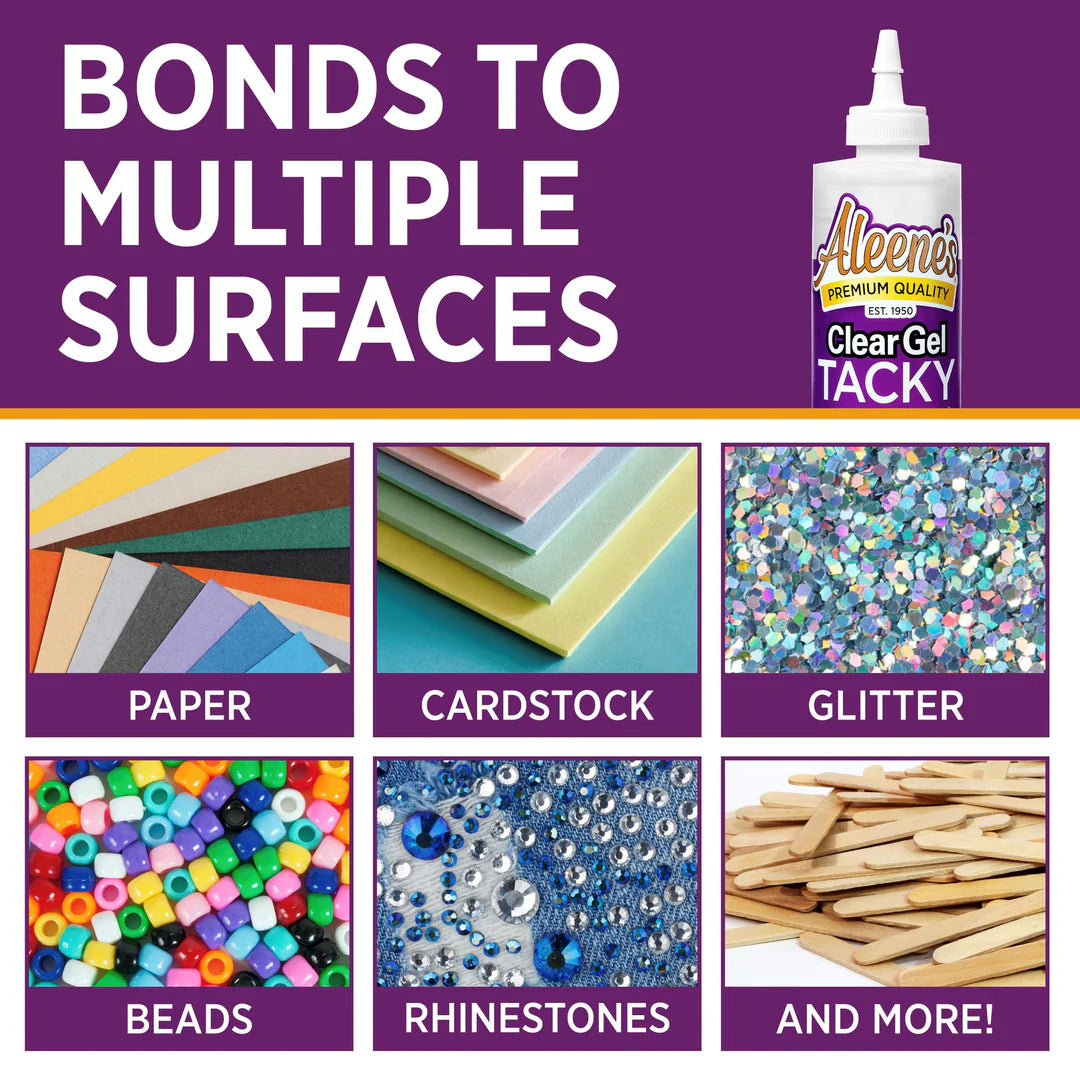A truly all-purpose crafting glue, Clear Gel Tacky possesses an ultra thick consistency. Its clear gel formula lets you see where you're applying glue for perfect projects every time. Low-odor and environmentally safe, it can be applied straight from its hand-friendly, soft squeezable bottle. Clear Gel goes on clear and dries crystal clear, too. It can be used on everything from florals to foam and wood to ceramics.