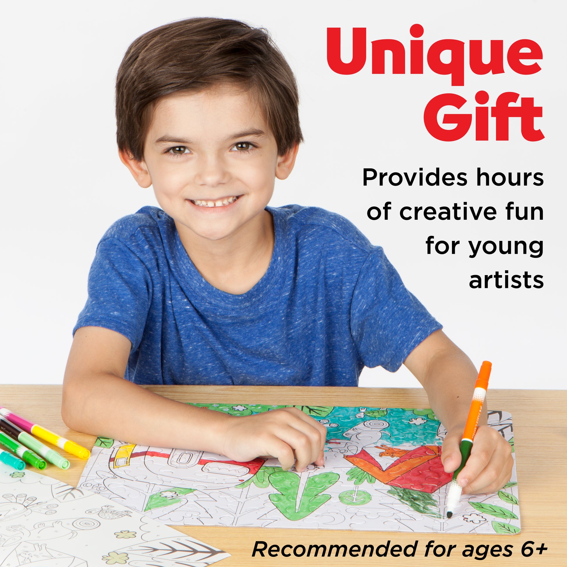 Includes full size 11” x 15” poster of puzzle design along with a number guide and 12 Duo-Tip Markers (24 colors!) with storage wallet