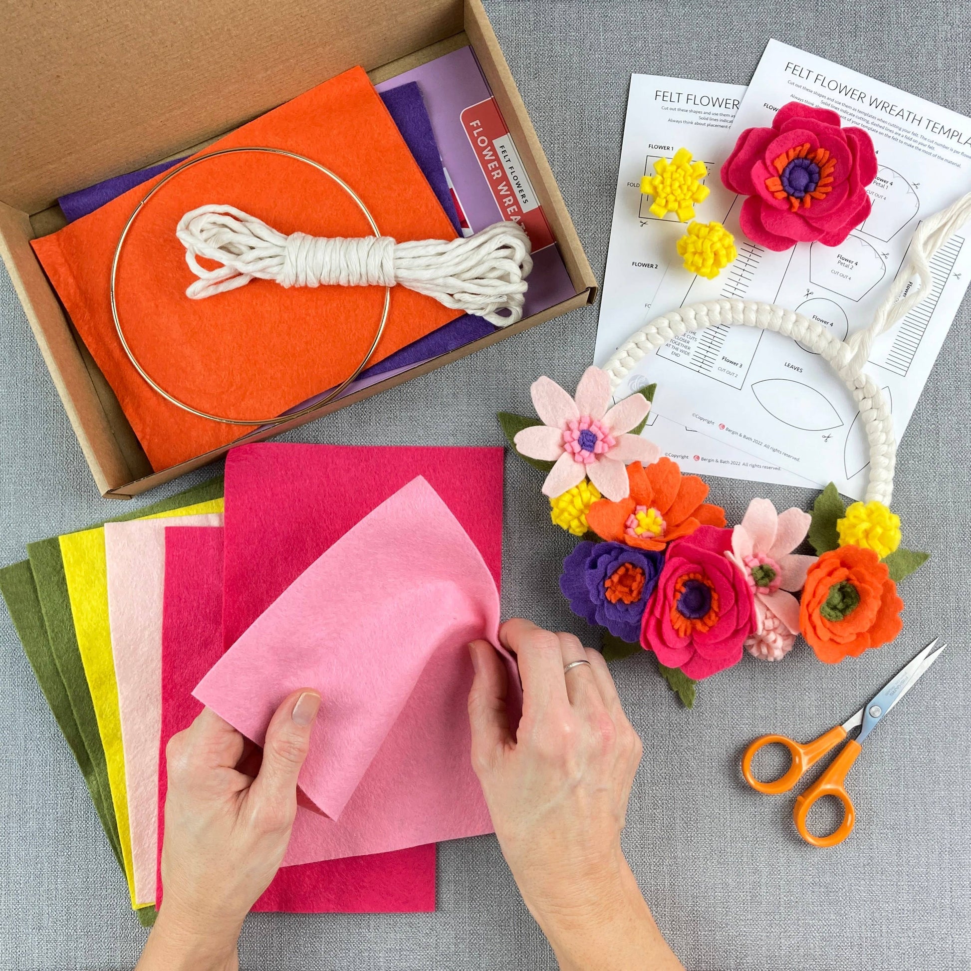 Make your own felt flowers and mount them onto a boho macramé wreath with this craft kit for adults. Everything you need is inside the box, making it a great creative gift idea.