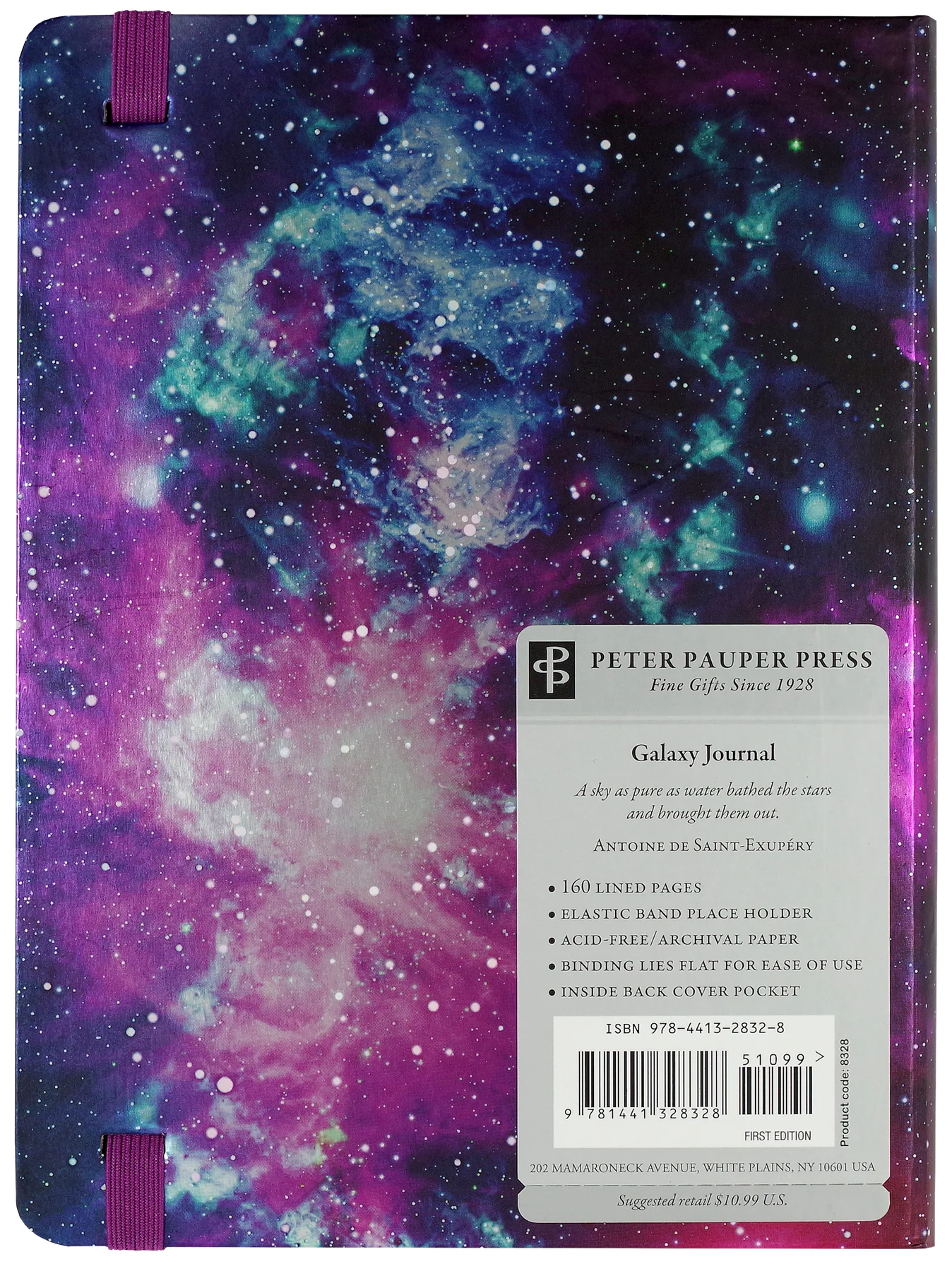An inside back cover pocket expands to hold notes, cards, mementos, and more.