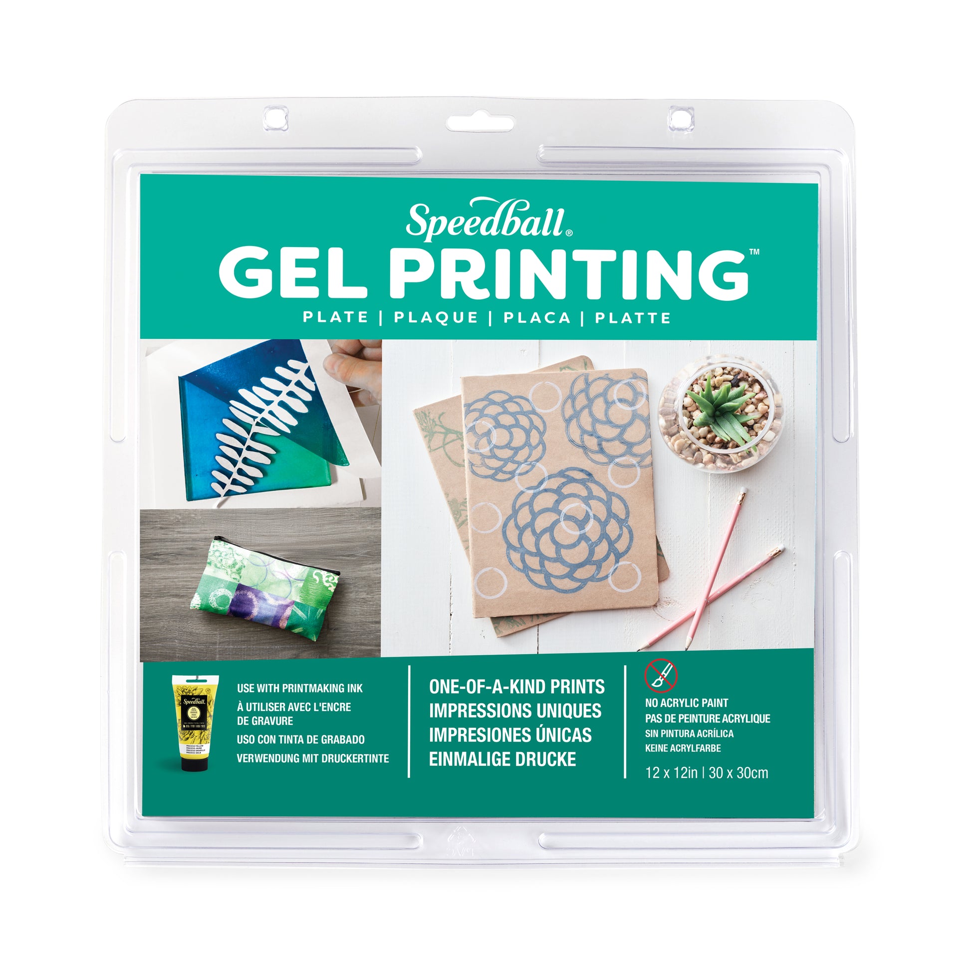 Explore a variety of printmaking techniques for card-making, journaling, scrapbooking, home décor projects, mixed media, and much more! Designed for use with a wide range of products, the Speedball Gel Printing Plate offers a smaller profile for increased levels of detail and added dimension to prints. Specially formulated for any printmaking ink, Speedball Gel Printing Plates are ideally suited for monoprinting, block printing, screen printing, intaglio, and liquid pigment inks. These lightweight gel surfaces may also be used to print with acrylic, oil paints, and dyes.