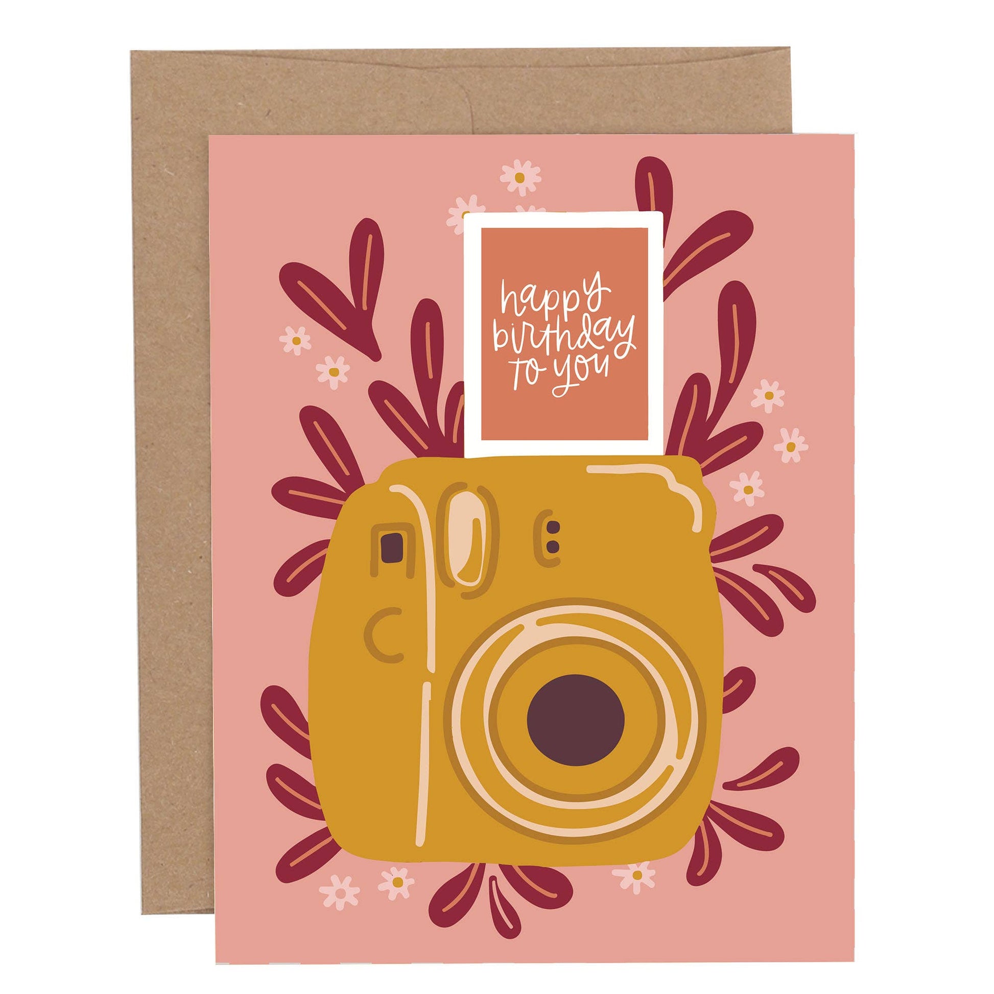 Step into the spotlight of birthday celebrations with our Happy Birthday Camera Greeting Card! 🎉 Capture the joy of the occasion with this adorable card featuring a retro-style Polaroid camera design. Snap a picture-perfect moment of birthday cheer and send it off to your favorite birthday star! Send this card to friends and family who love to capture life's special moments!