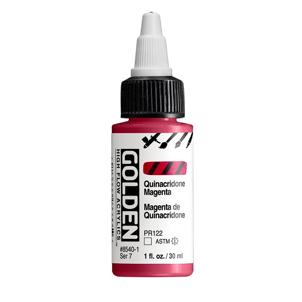 High Flow is our newest acrylic paint that can go from brush to marker or from dip pen to airbrush and more. From fine lines to broad strokes, High Flow Acrylic has an ink-like consistency that lends itself to a wide range of techniques, including staining, leveling, calligraphy, and mixed media.
