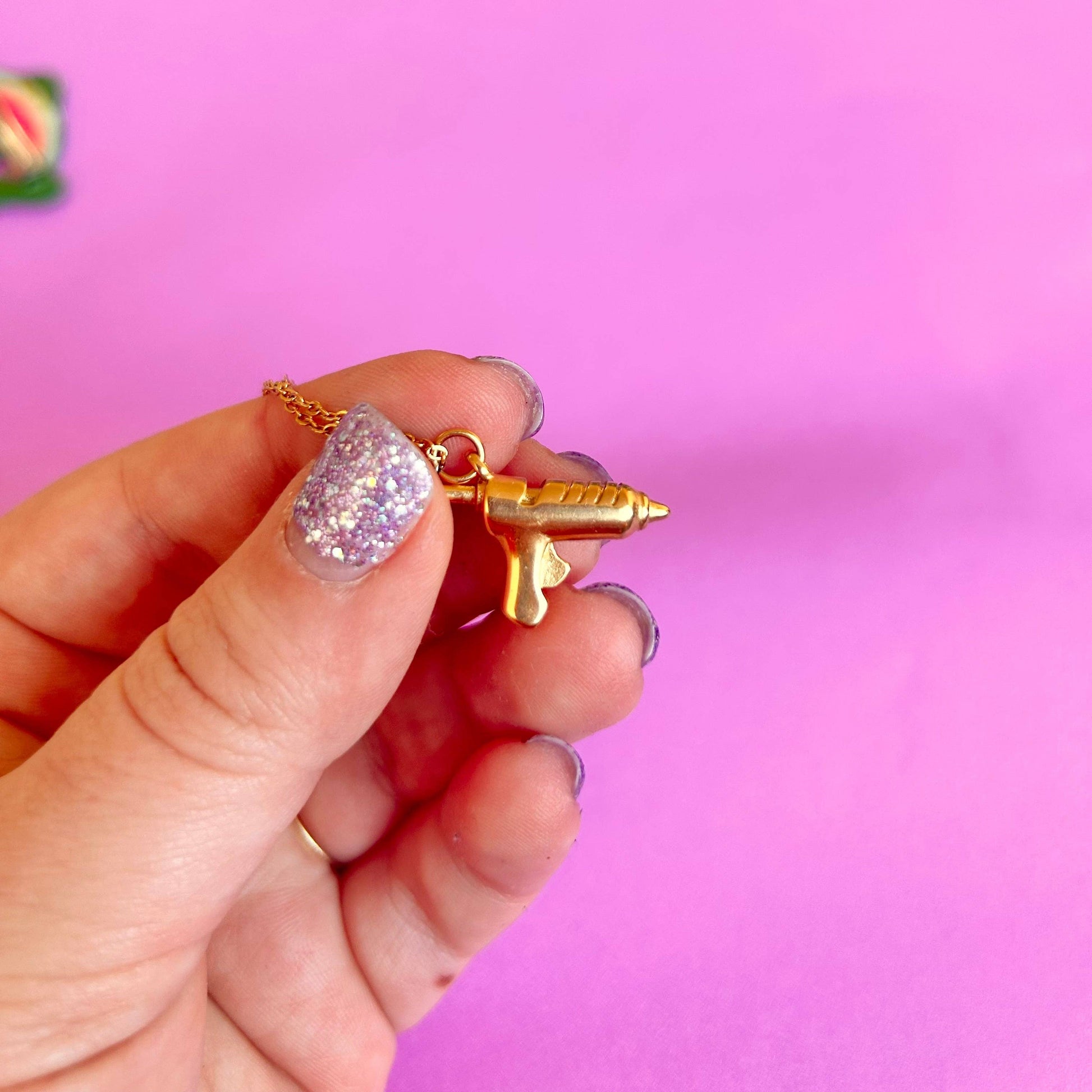 Calling all hot glue girlies! Time to take your love for the greatest craft tool of all time to the next level! Necklace measures 15.5-17.5 inches and features a stainless steel chain with 18k gold plating and a 3d hot glue gun! Hypoallergenic!!!