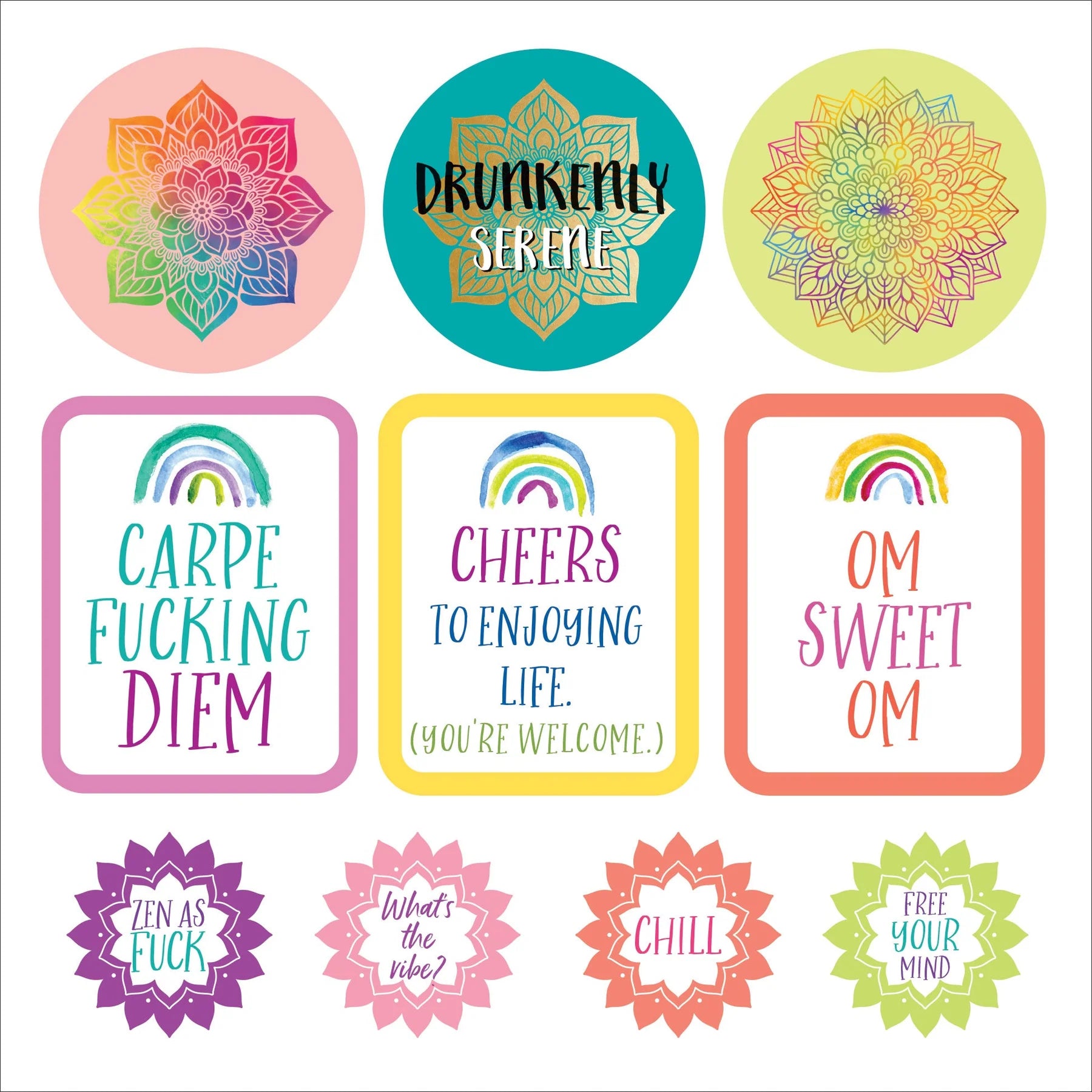 Say goodbye to bad vibes with these irreverent and inspiring stickers!