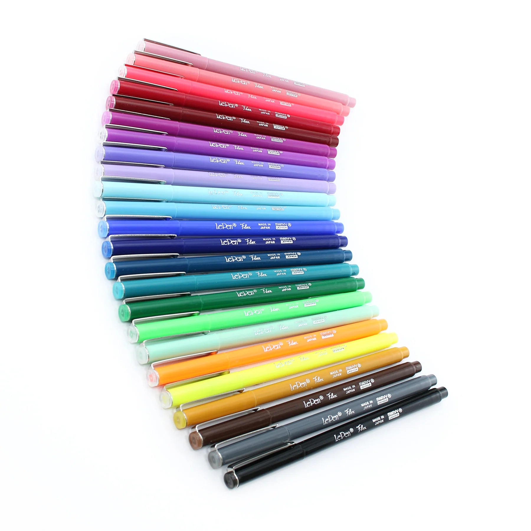 Named for their extra-fine flexible brush tip, LePen Flex are acid-free, non-toxic, dye-based ink pens with a lightweight sleek barrel design. The vivid ink color matches the color of the barrel. These pens are great for hand lettering, journals and planners.