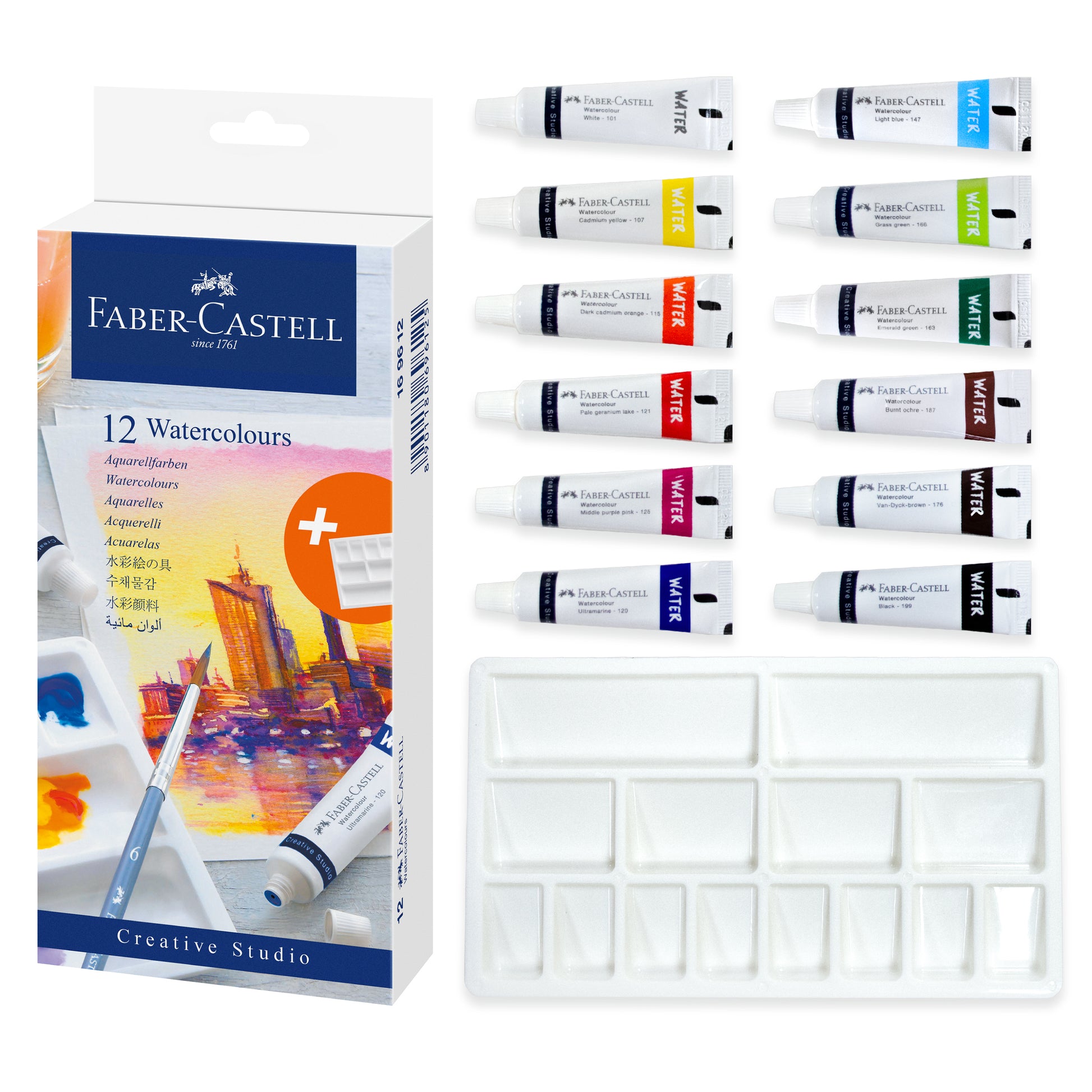 Beginner painters will love creating with these easy-to-use, premium quality watercolor paints! Faber-Castell Watercolor Paints have high brilliance, good lightfastness and blend easily. Mix the vivid colors to create an endless variety of hues. Watercolors are a versatile medium with unlimited forms of artistic expression! These vibrant liquid watercolor paints can be dissolved once applied and dilute easily for flowing color. Apply directly from the watercolor paint tube or create and blend the perfect color for your project with the included washable plastic mixing palette.