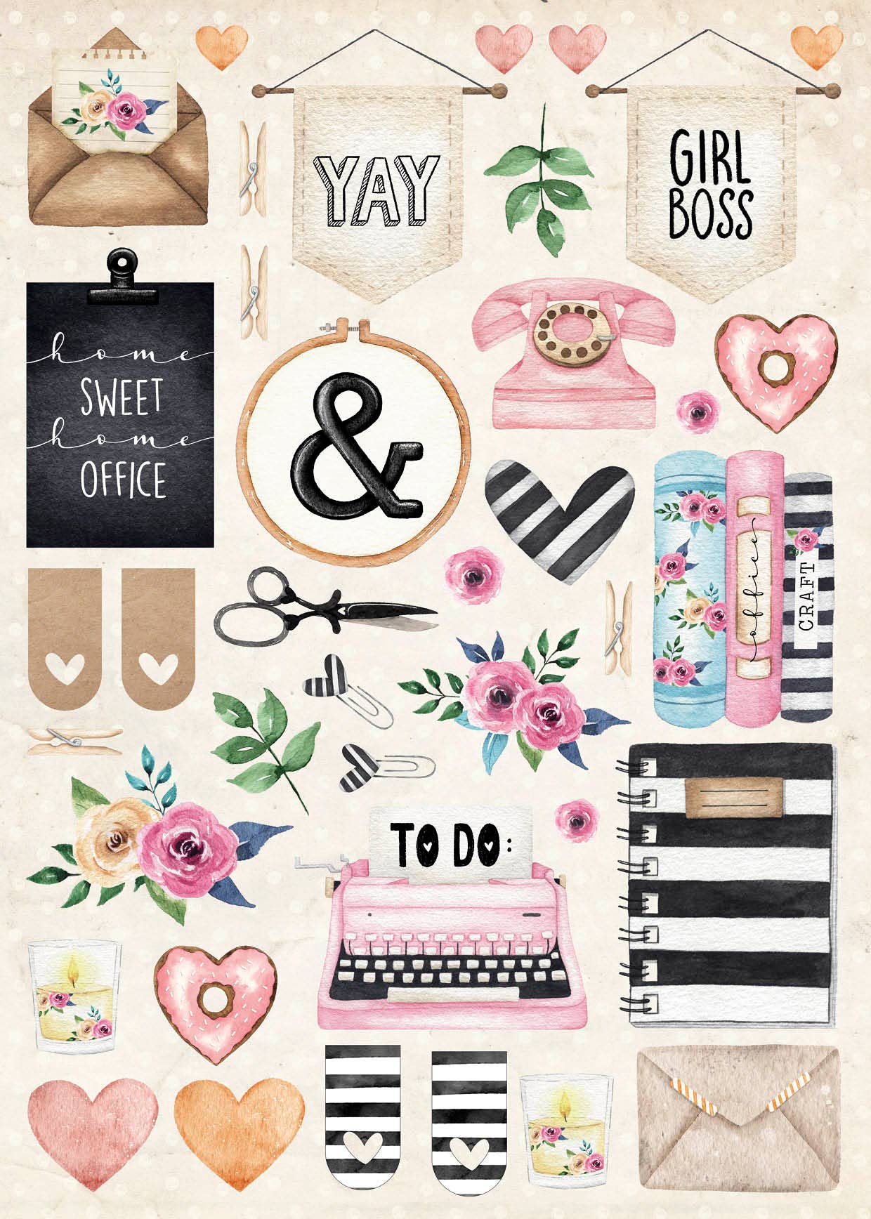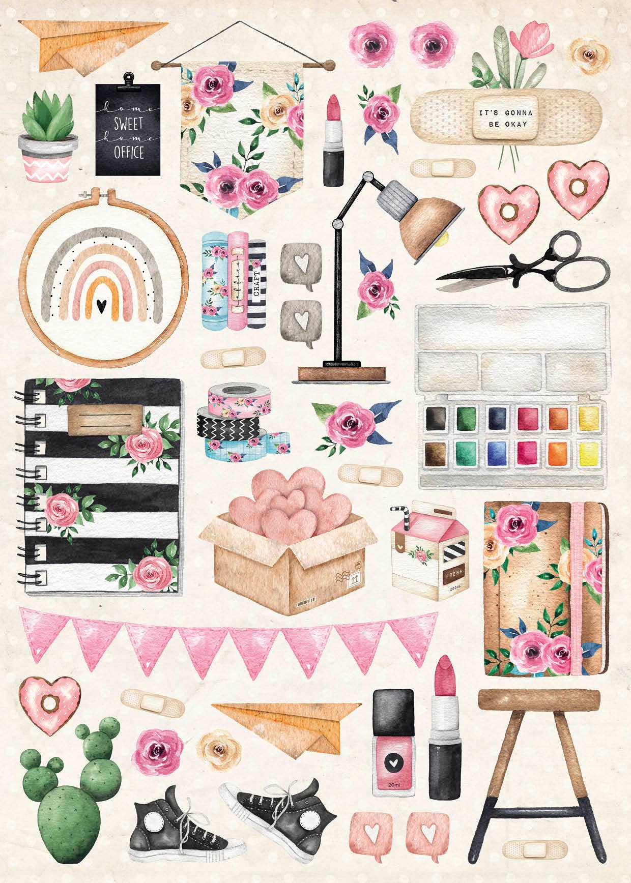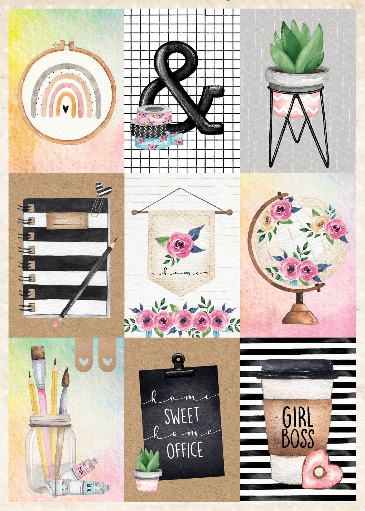 This Love To Create DIY Block has fun images of everything the creative woman needs in her office including art supplies, phones, flowers, plants and more. Includes 32 sheets of 6x2 embellishments and 10x2 double-sided pattern papers and will be fantastic additions to your cards and scrapbook pages. Printed on heavyweight cardstock 170gsm. Acid and lignin free.