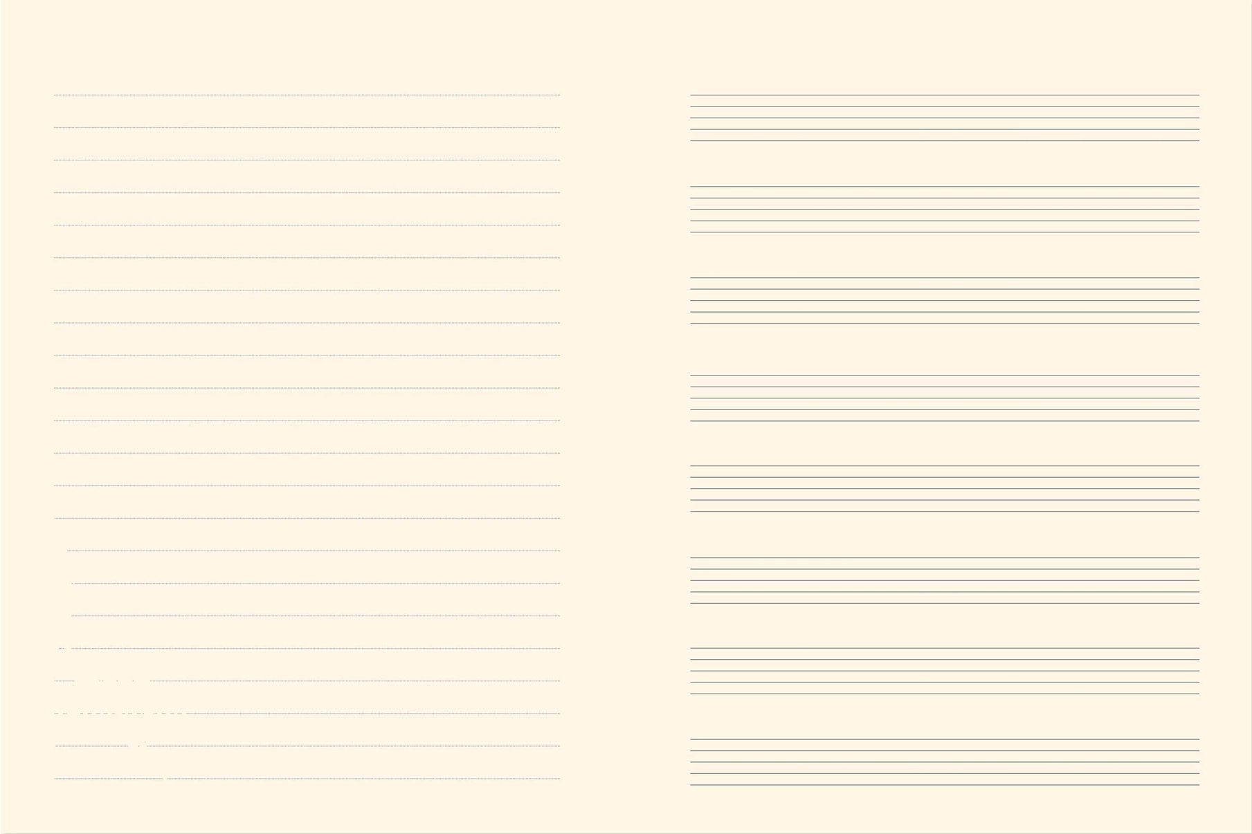 Journal comes with lined left-hand pages for ideas and lyrics, and staffed right-hand pages for composing music.