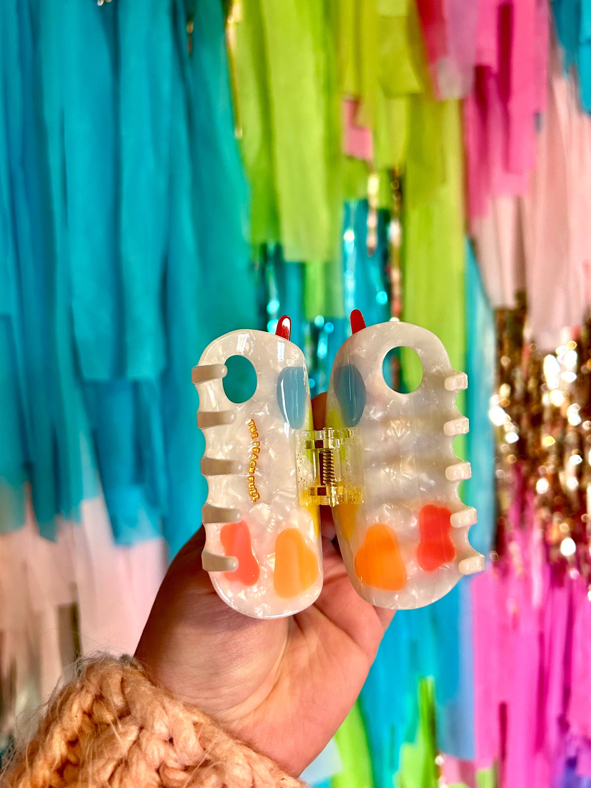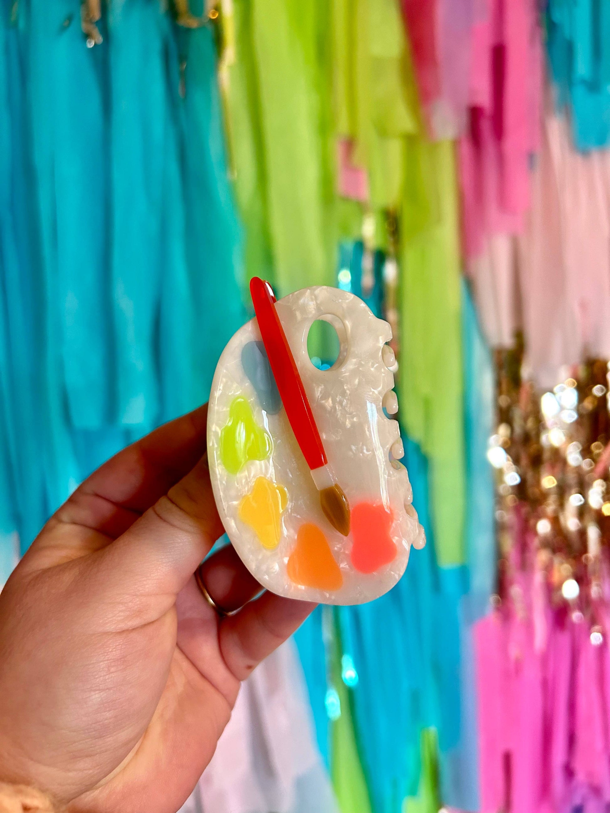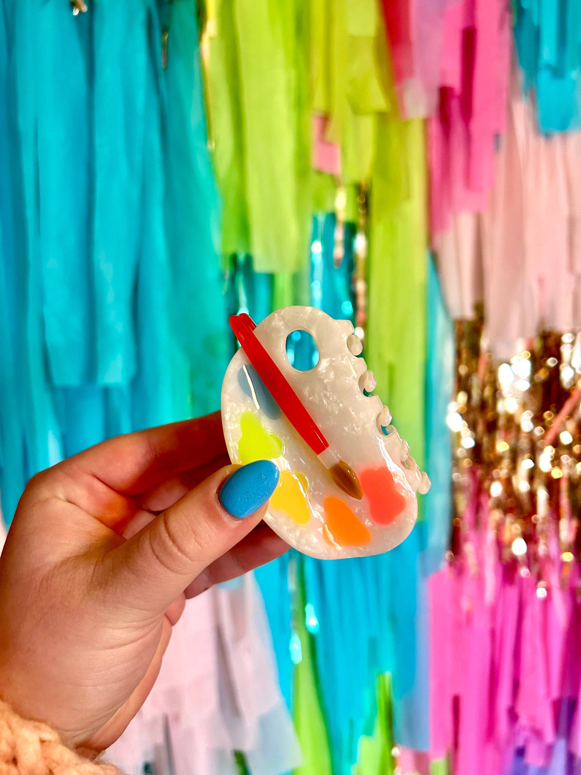 Give those paintbrushes that you’ve been using as hair chopsticks a break and upgrade to this adorable paint palette hair claw. Its pearlescent details and vibrant colors make it truly pop! Complete with a 3d paintbrush, this acetate hair claw is just what you need to keep your hair at bay while you create.