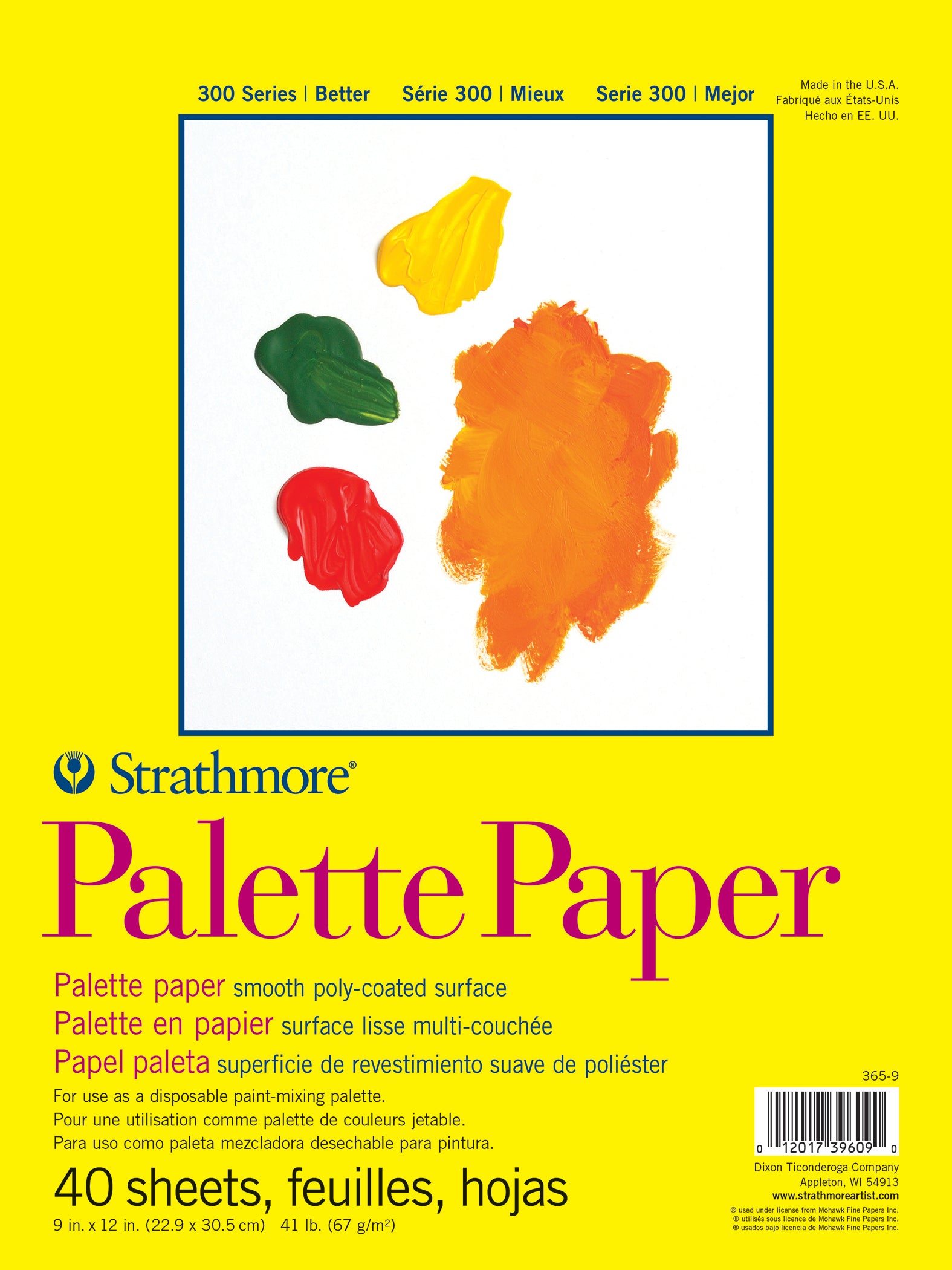 A plastic coated paper suitable for use with all mediums; oil, acrylic, watercolor, casein, etc. Paint never soaks through or makes the paper buckle. 40 per pad. 9 in x 12 in.