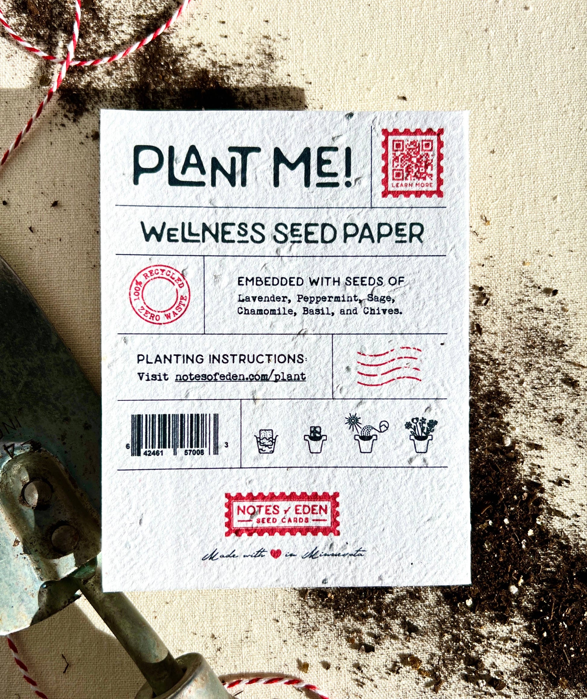 PLANTING INSTRUCTIONS: Simply tear up the card after use, soak the paper in water overnight, plant it in the garden, and watch your herb garden grow! (Planting instructions on back of card.)