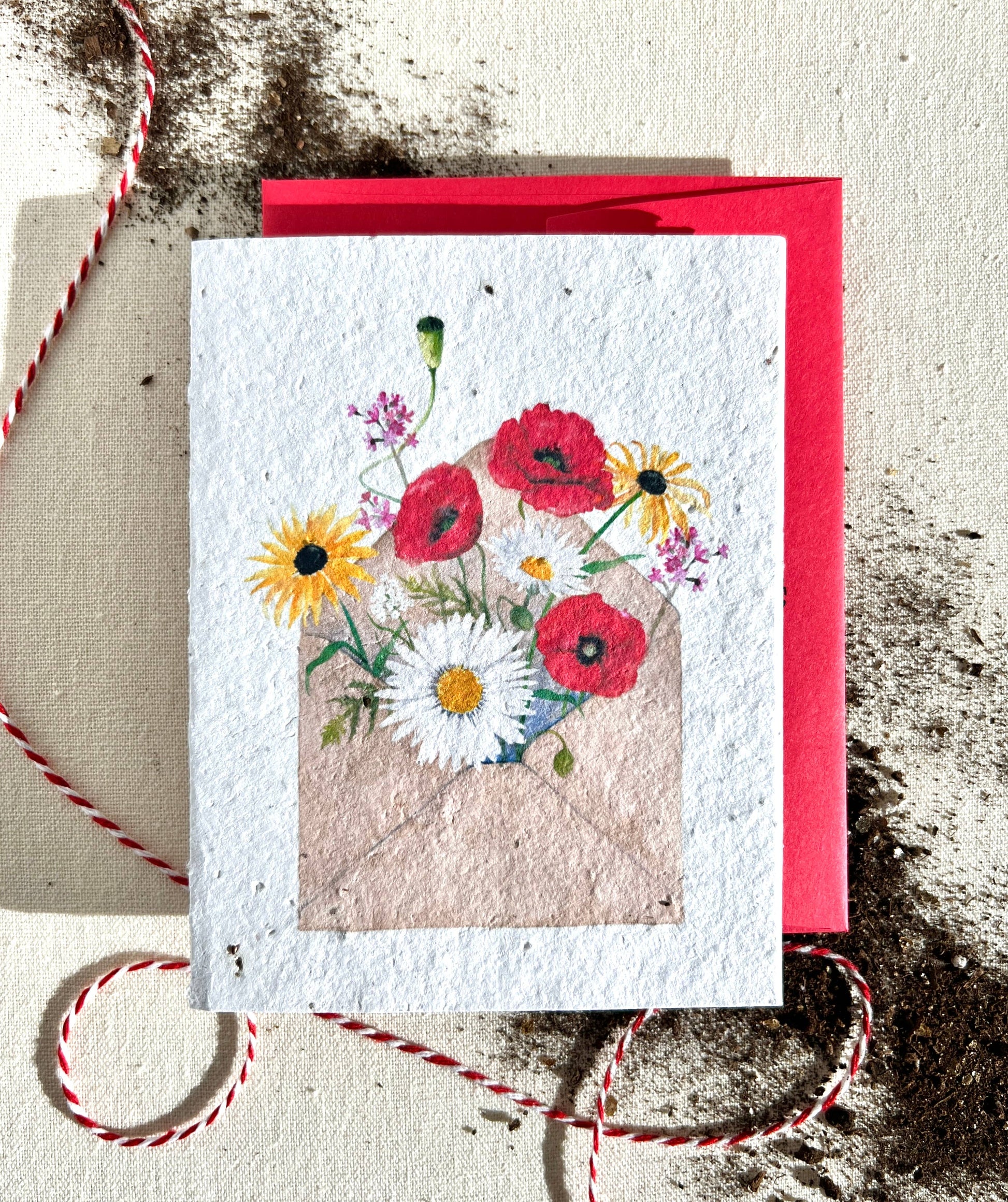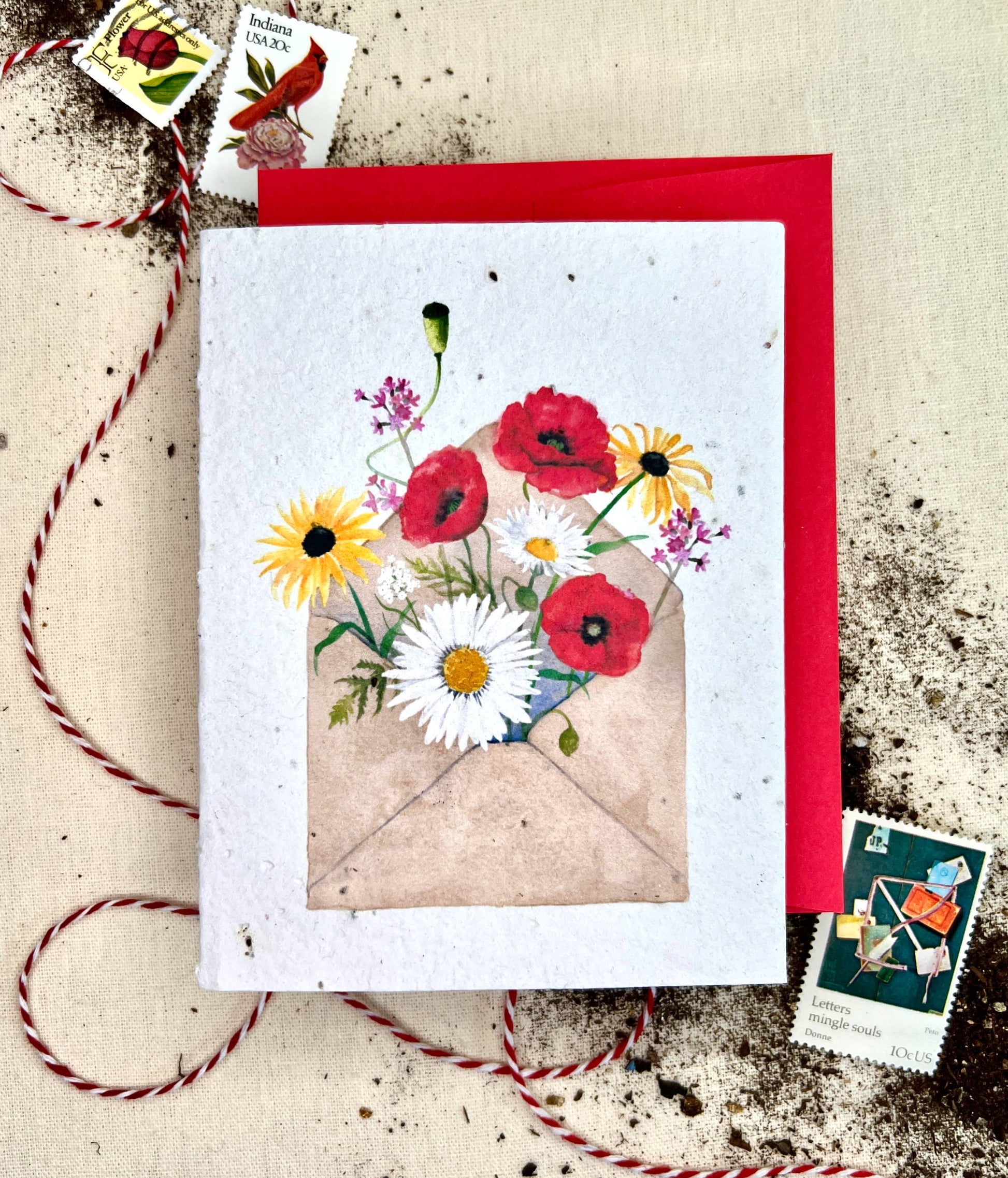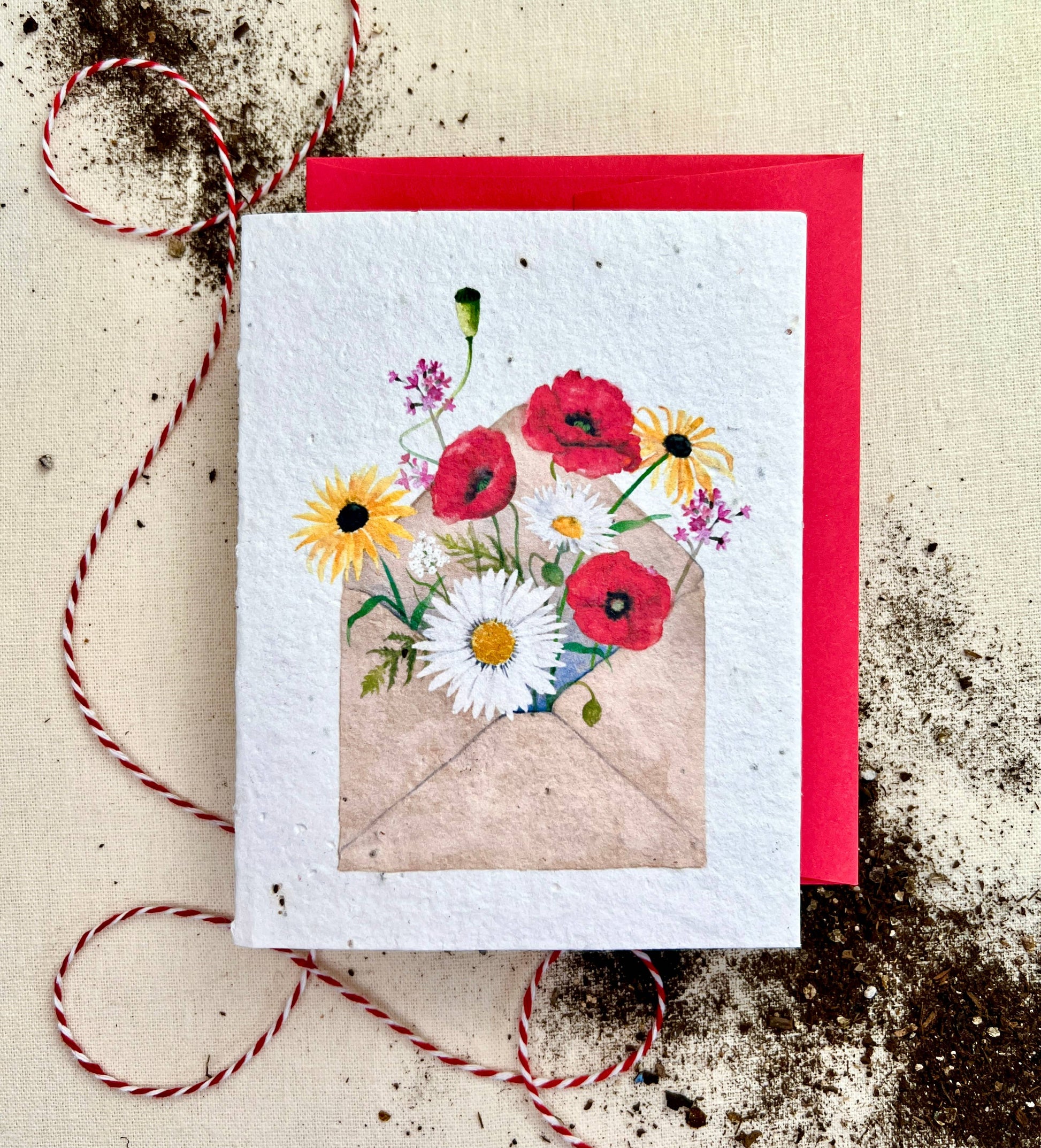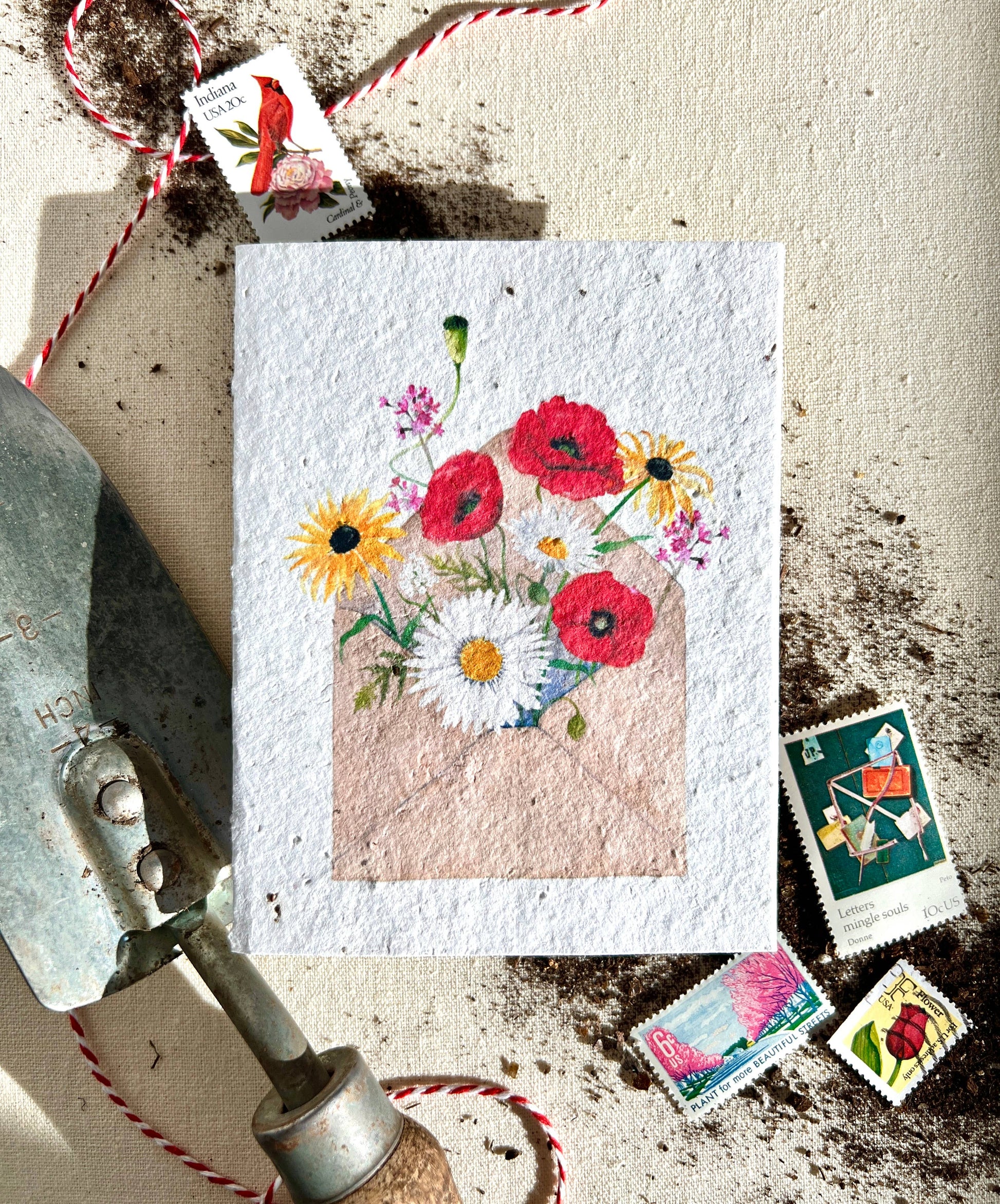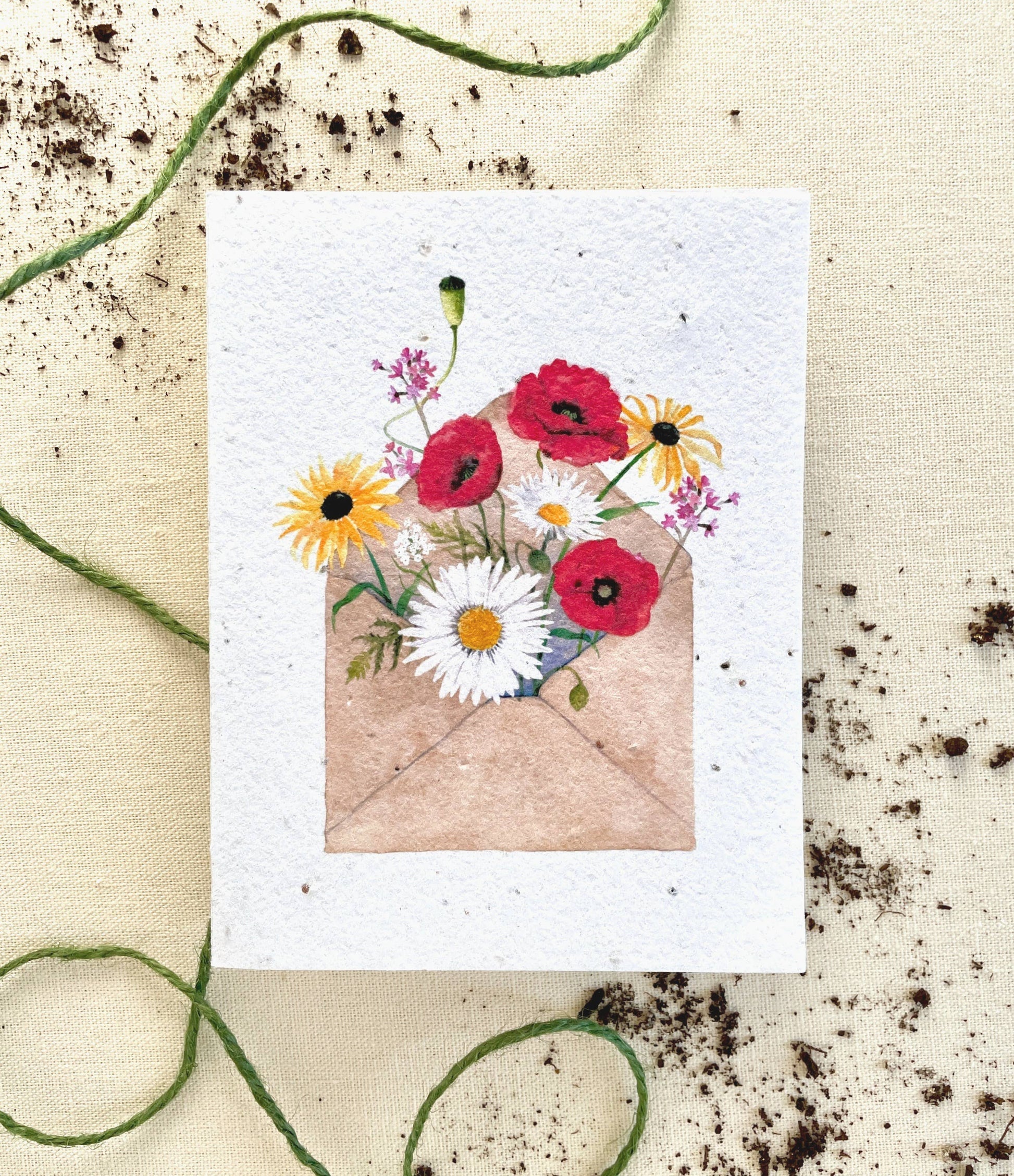 Beyond-sustainable cards for the nature lovers in your life! Share love and wildflowers in one little card. Flowers painted on the card match the seeds embedded in the paper!