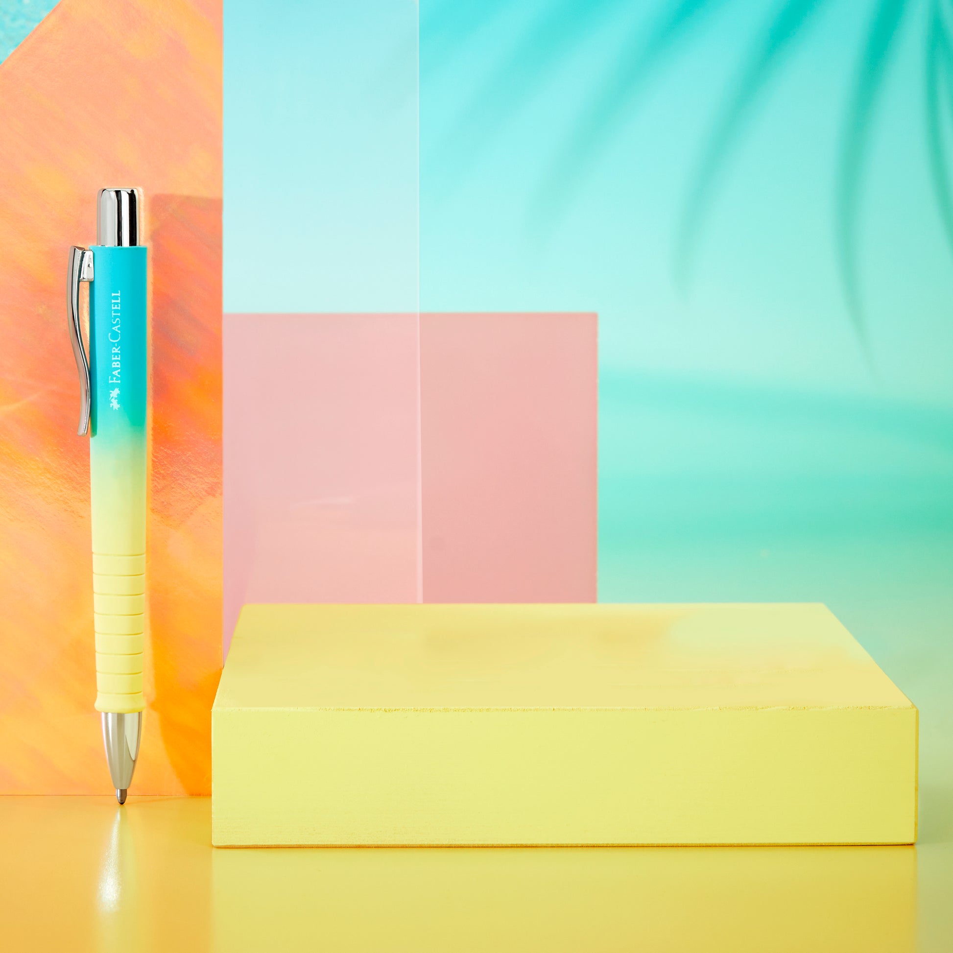 This popular gliding ballpoint pen in a simple, elegant design has a non-slip, soft-touch surface. The triangular ribbed grip section provides for fatigue-free writing. The pen has a push button mechanism with a shiny metal clip and tip. The writing experience is comfortable and extra soft with the document-proof, extra broad refill in blue. Additional size/color refills available separately.