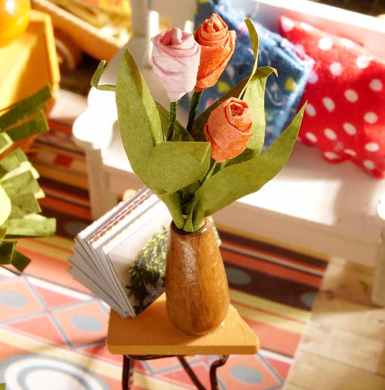 Robotime-Rolife Miller's Garden DG108 DIY green yard miniature is full of plants and flowers. Build a white bench and curl to the beautiful garden is a wonderful pleasure in daily life. Realistic details like window with curtain, wooden rails, frames, fences, flower beds, flower pot. It is relaxing to craft and assmeble your dream house together.