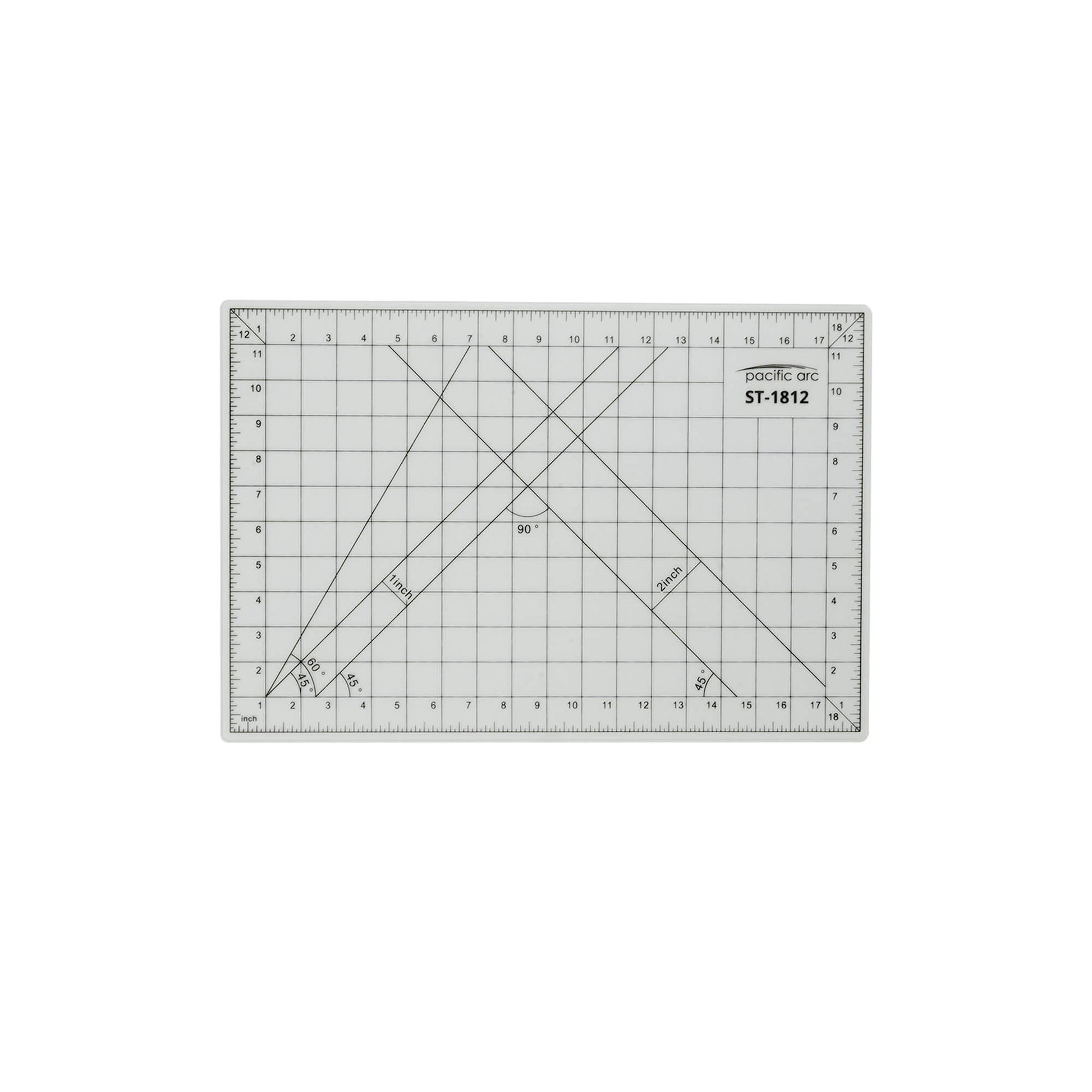 Pacific Arc offers cutting mats that are Self-Healing. Soft, resilient, durable PVC surface on both sides of the 3-ply mat in a sandwich construction keeps the mat from warping or cracking. The surface of the mat holds the paper or film firmly, prevents a run or cutting error with the blade, and provides an ideal surface for drawing. The mats have 1/8 and 1/16 scales along the borders, and are imprinted with 1" x 1" grid lines. Each grid is dotted every 1/16". Standard and self-healing cutting mats.