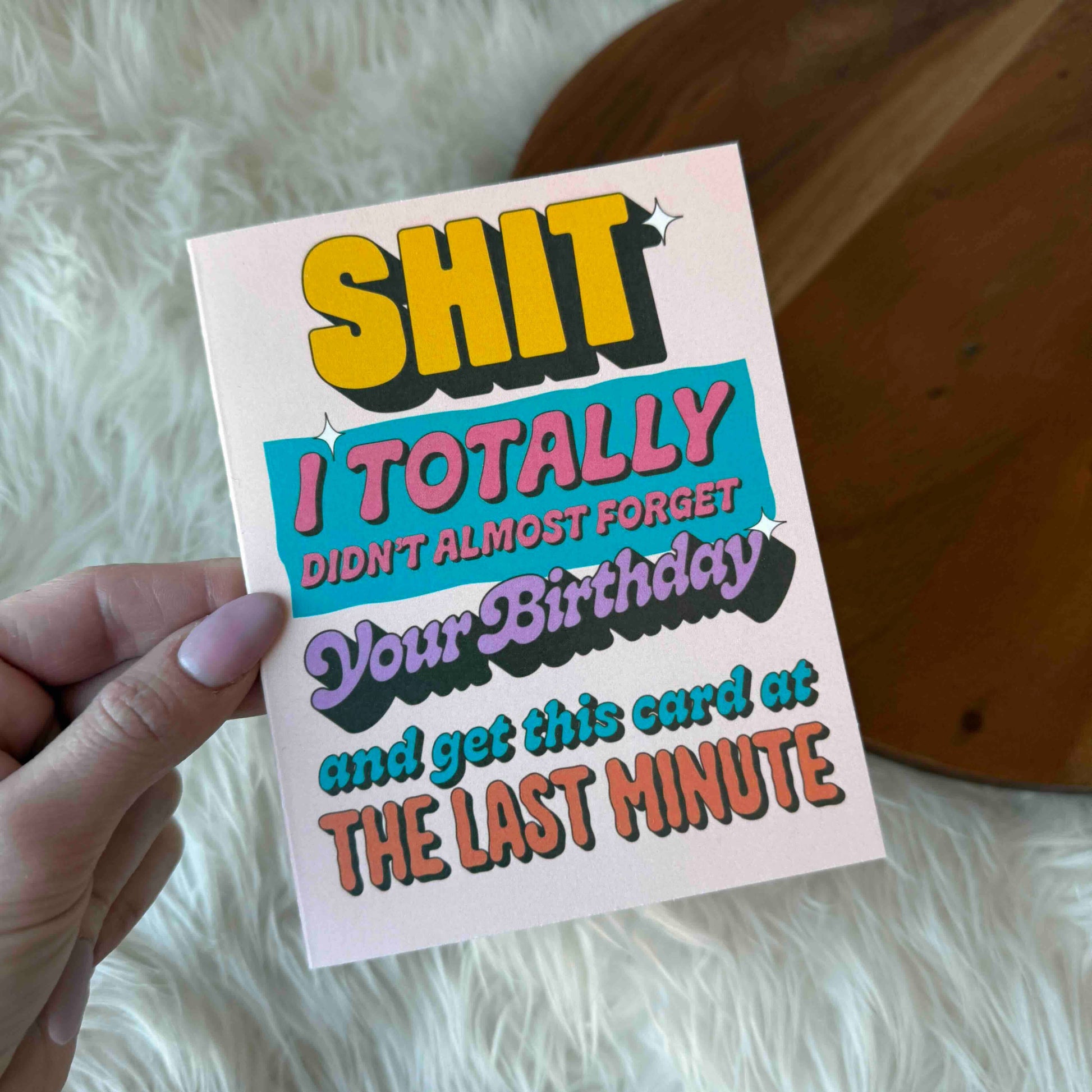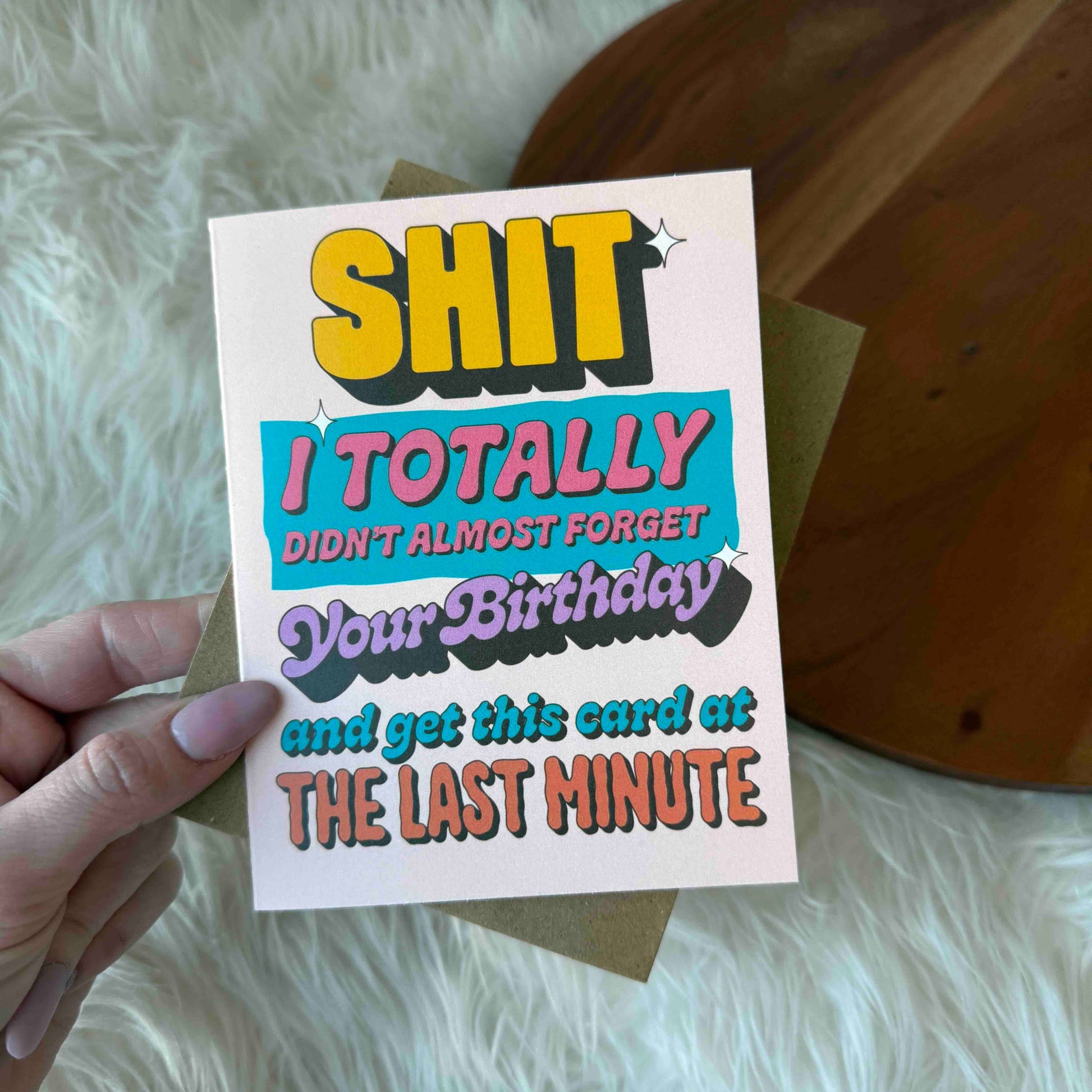 The last minute panic when you almost forget a birthday... we've all been there. Now you can make sure the person receiving knows just how little you care with this last minute card - "shit I totally didn't almost forget your birthday and get this card at the last minute" -A2 Size (4.25 x 5.5 inches folded). -Paired with a coordinated envelope. -BLANK INSIDE -Hand Drawn