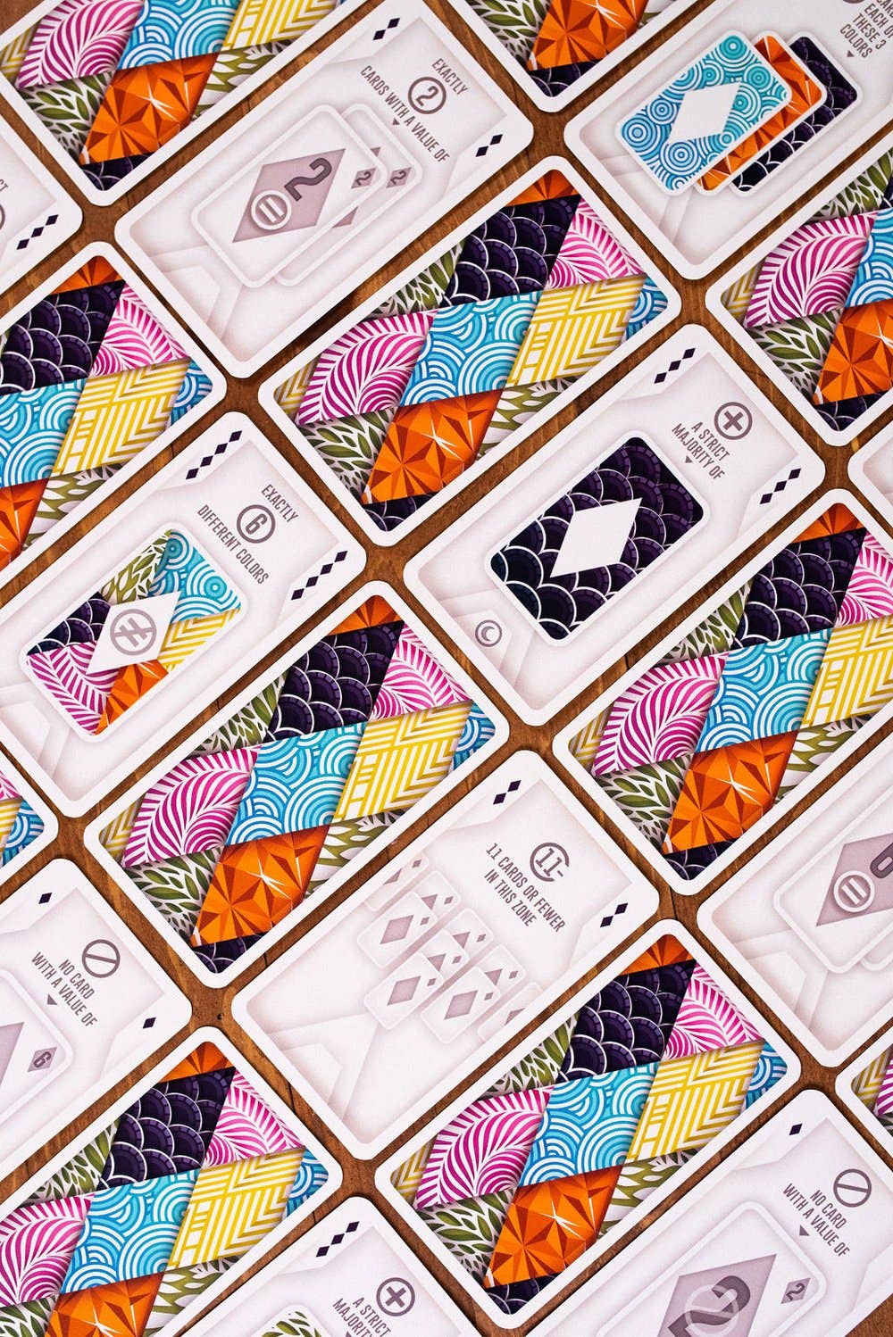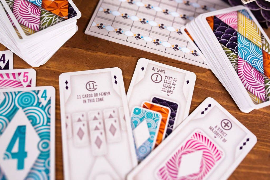 The score of each player is calculated by multiplying the points obtained in the area on their left by the points in the area on their right. Throughout the game, it is therefore necessary to balance this double alliance in order to score as well as possible on both sides and emerge as the sole winner.
