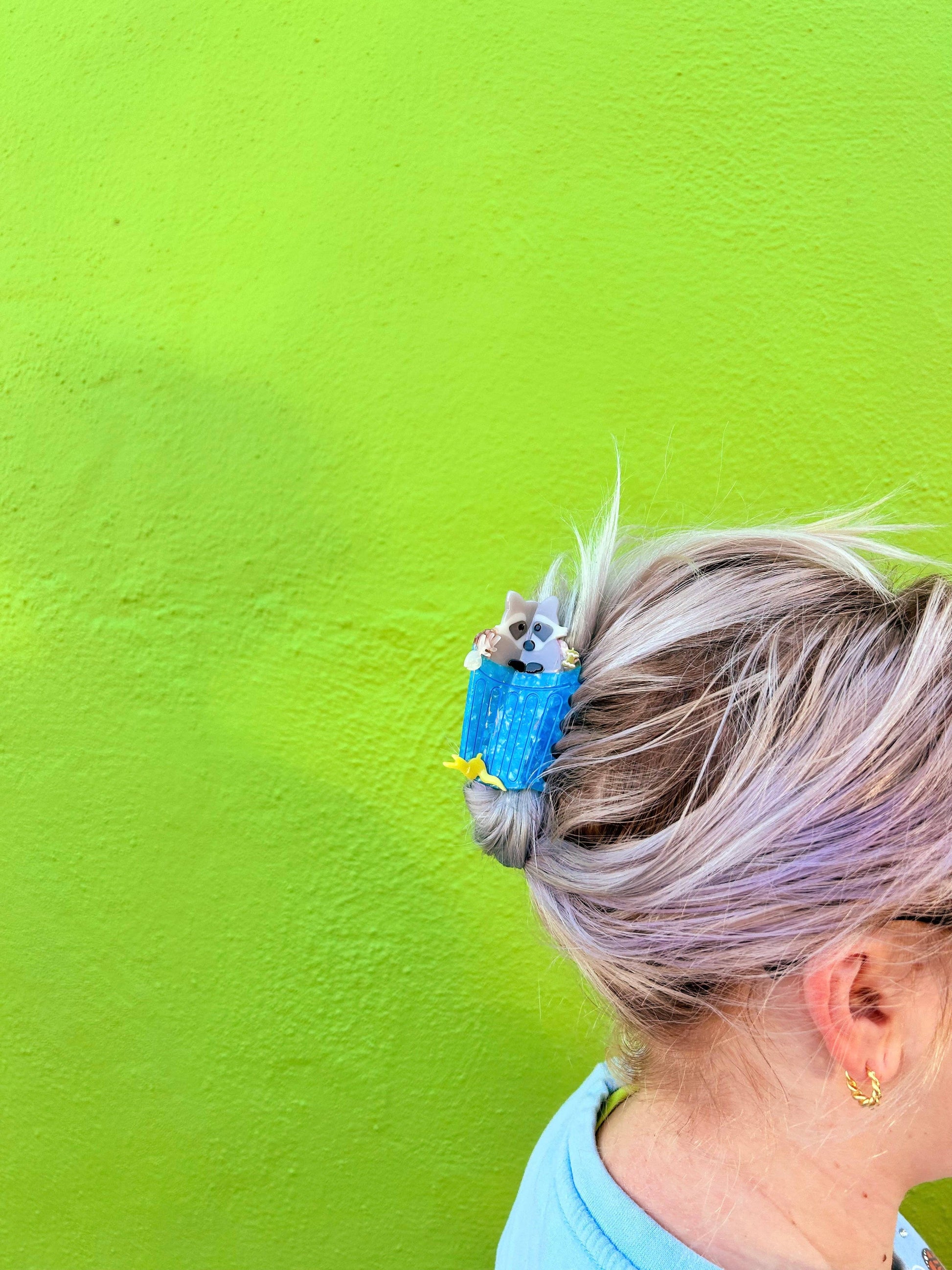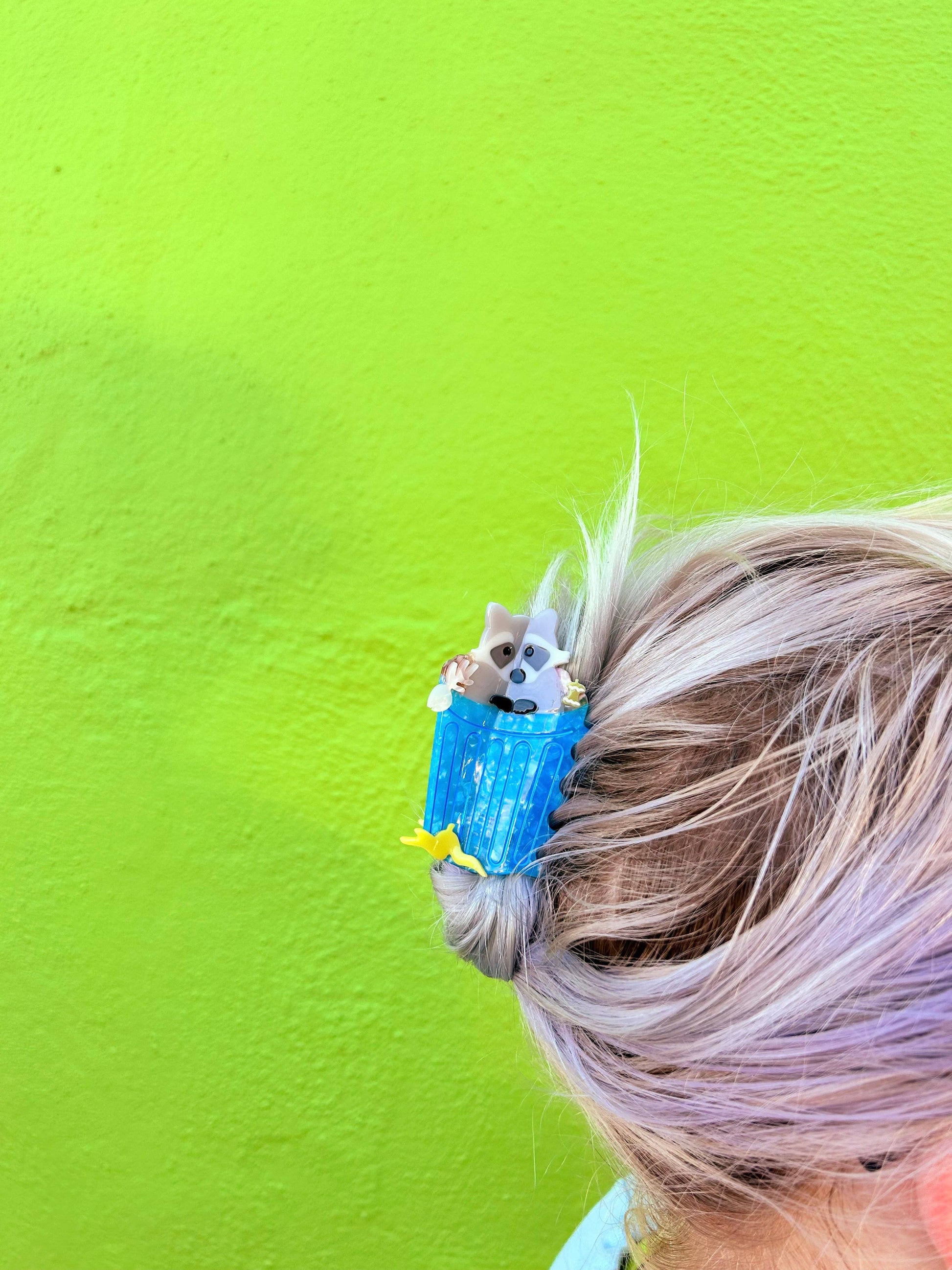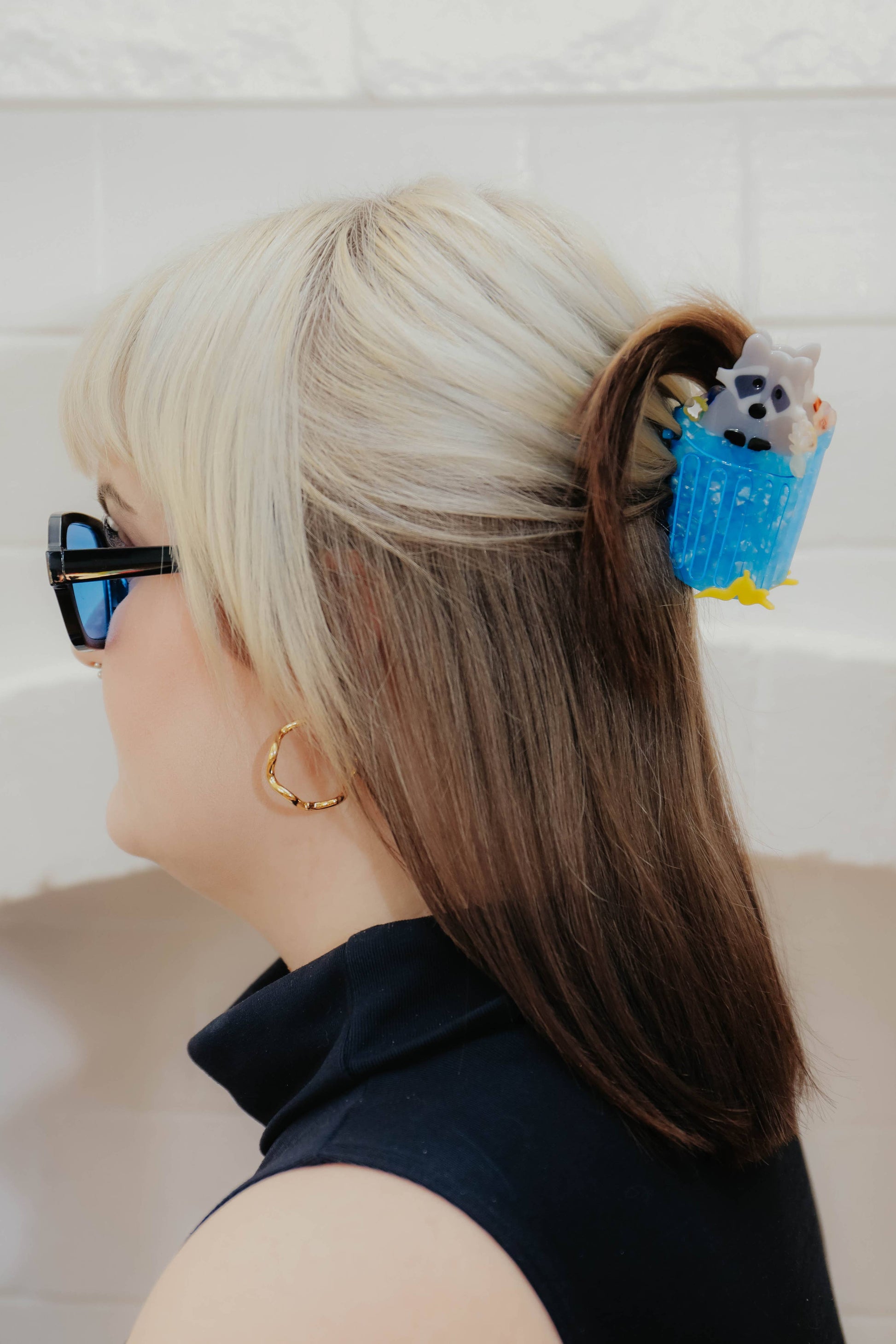 I'M THE TRASH MAN! And every trash man deserves their own trash panda. This raccoon inspired hair claw comes complete with a little guy in his cozy trash can and all his favorite scraps.