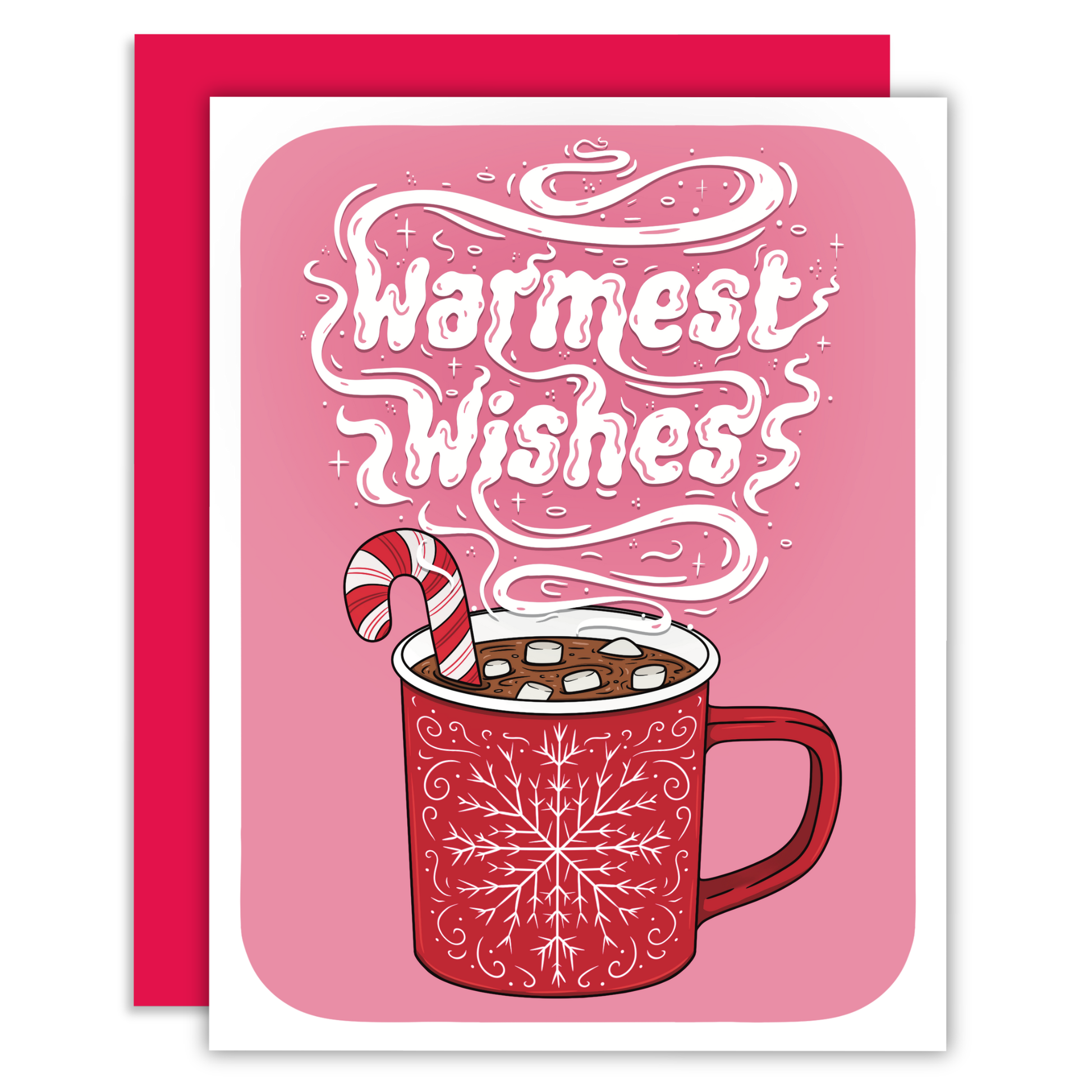 For the one who keeps your heart toasty, even when it’s freezing outside. This A2-sized (4.25 in. x 5.5 in.) ‘Warmest Wishes’ greeting card features a mug of hot cocoa with a candy cane stirrer and steam that spells out your affection. Blank inside for your own steamy sentiments.