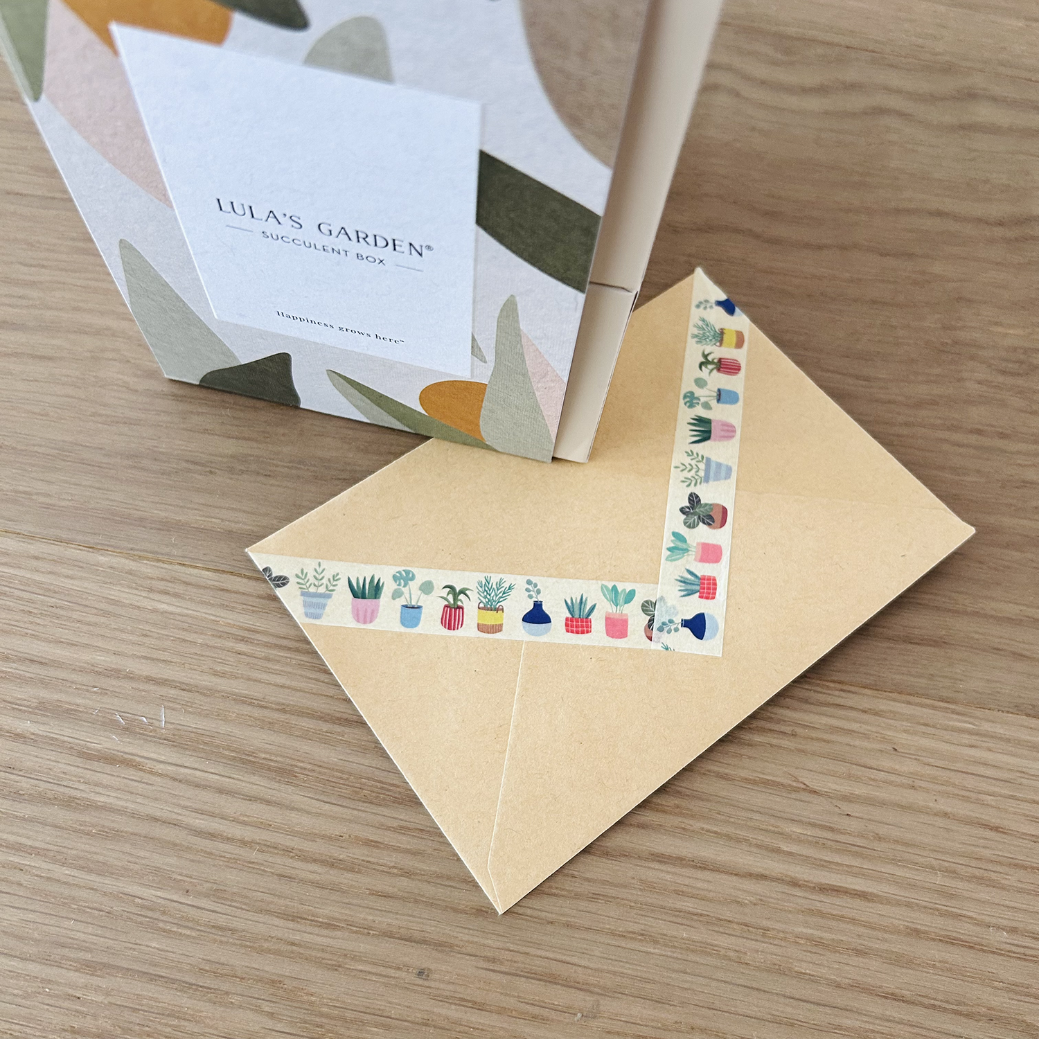 This washi tape features a calming collection of houseplants. These 15 mm wide rolls pack a punch with their striking designs and color, not to mention their eye-catching packaging makes them the perfect gift for all crafters and DIYers.